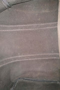 Item has mild storage smell. Exterior bottom has lose thread. Interior lining has discoloration. Front, back, bottom and handle have creases. Front, back and bottom is stained with water mark. Side(L) is stained with pen mark.