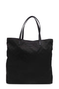 This Gucci Guccissima Tall Tote is crafted of Nylon in black. The bag features a tonal GG Guccissima Pattern, top handle strap and a Gucci leather tab on the front of the bag. The bag opens to a fabric lining with zipper and 2 patch pockets.