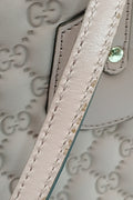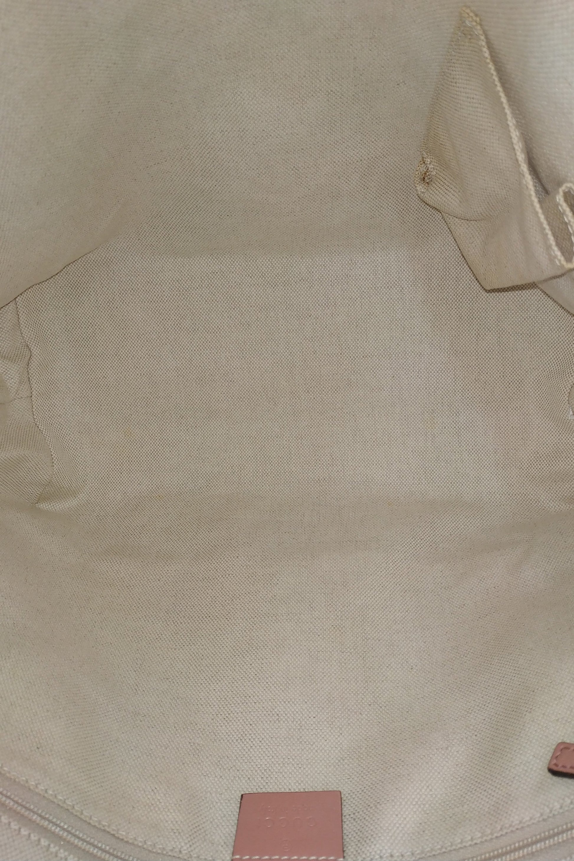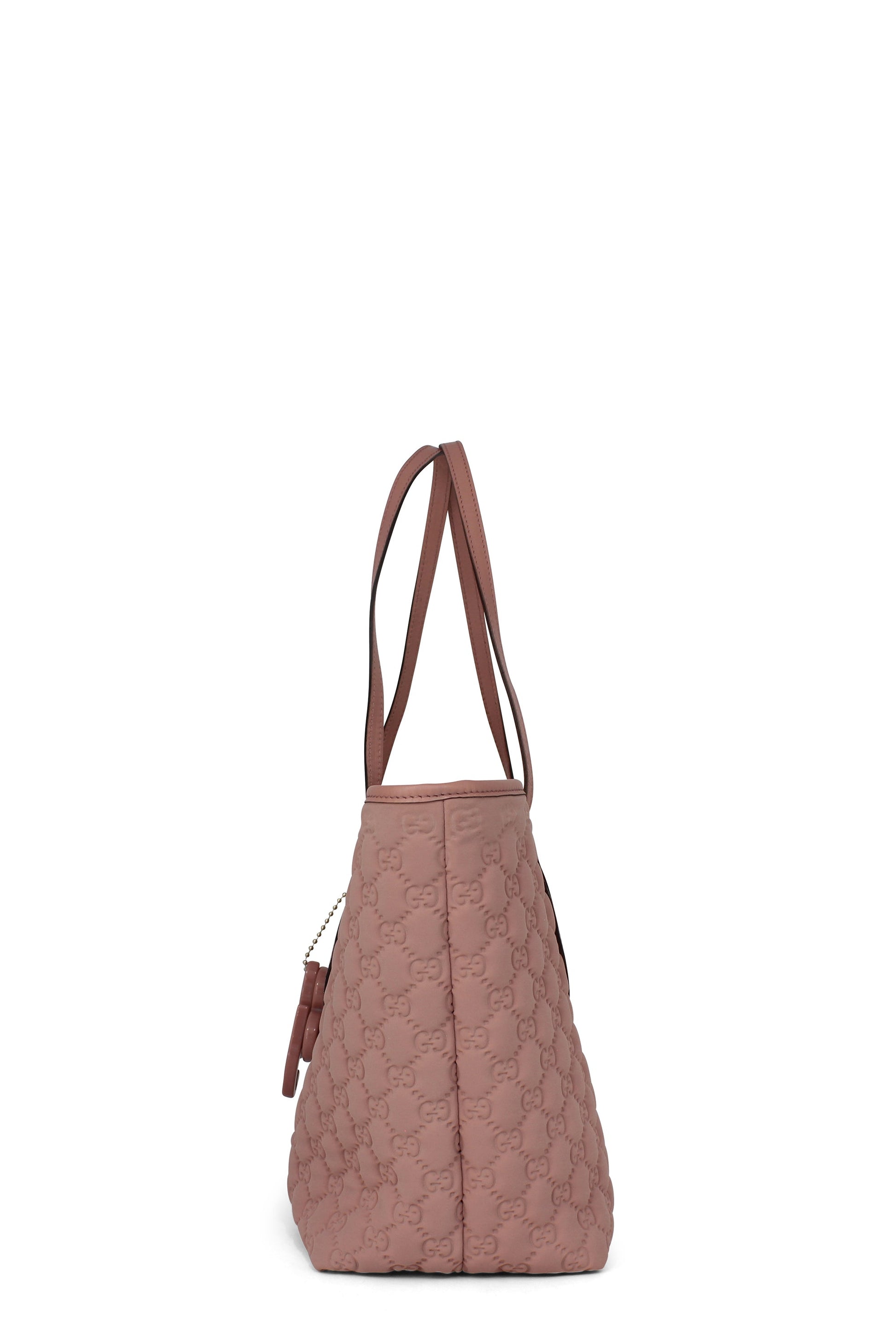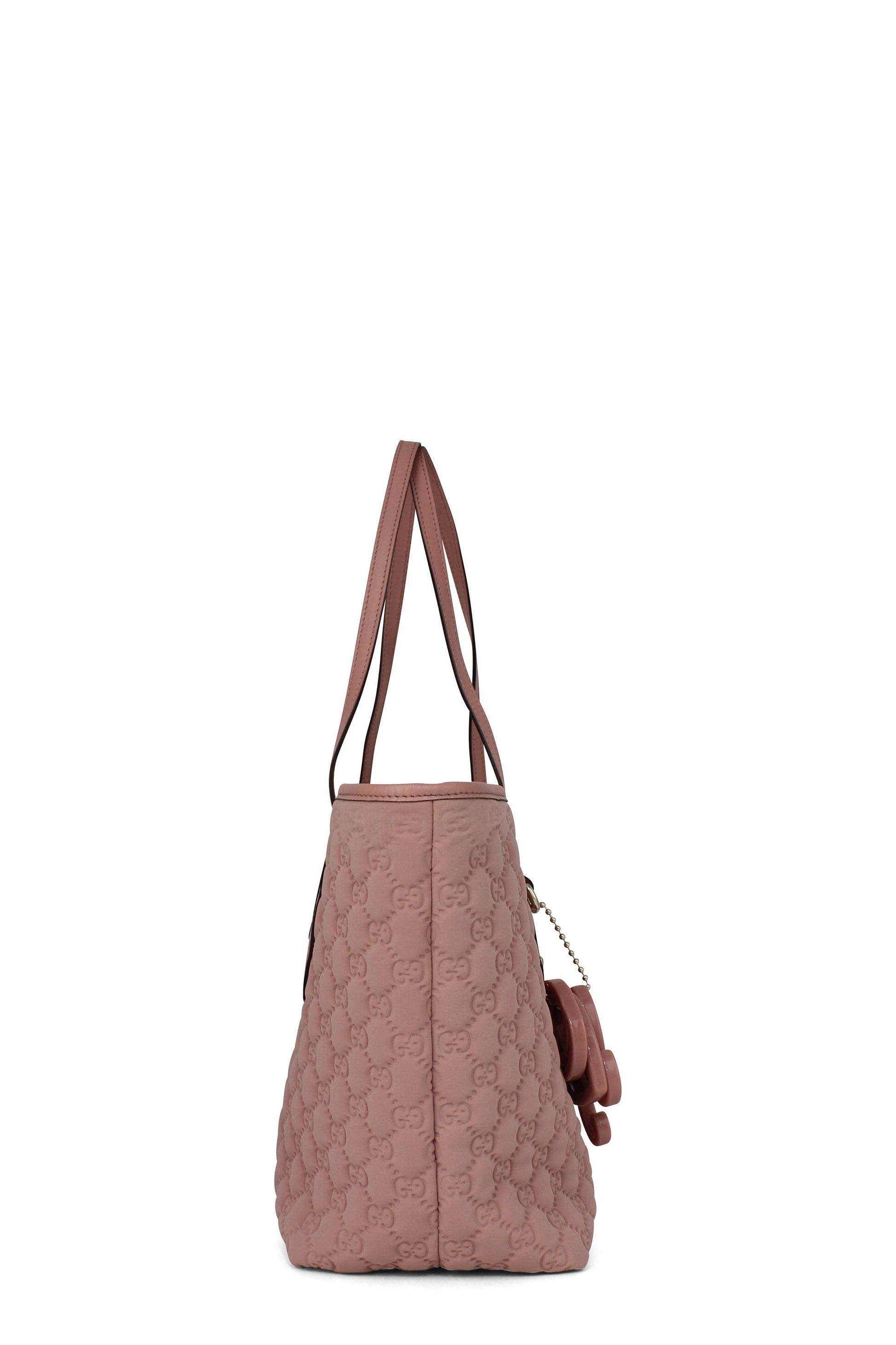 This is a stylish bag is crafted of Guccossima fabric in pink. The bag features leather straps and gold hardware. The top is open to a beige fabric interior.