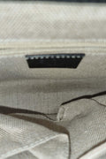 Item is slightly out of shape. Exterior front, back, bottom corners and logo are scratched. Exterior corners and handle are peeling. Interior pocket has discoloration and loose stitching. Exterior back has creases.