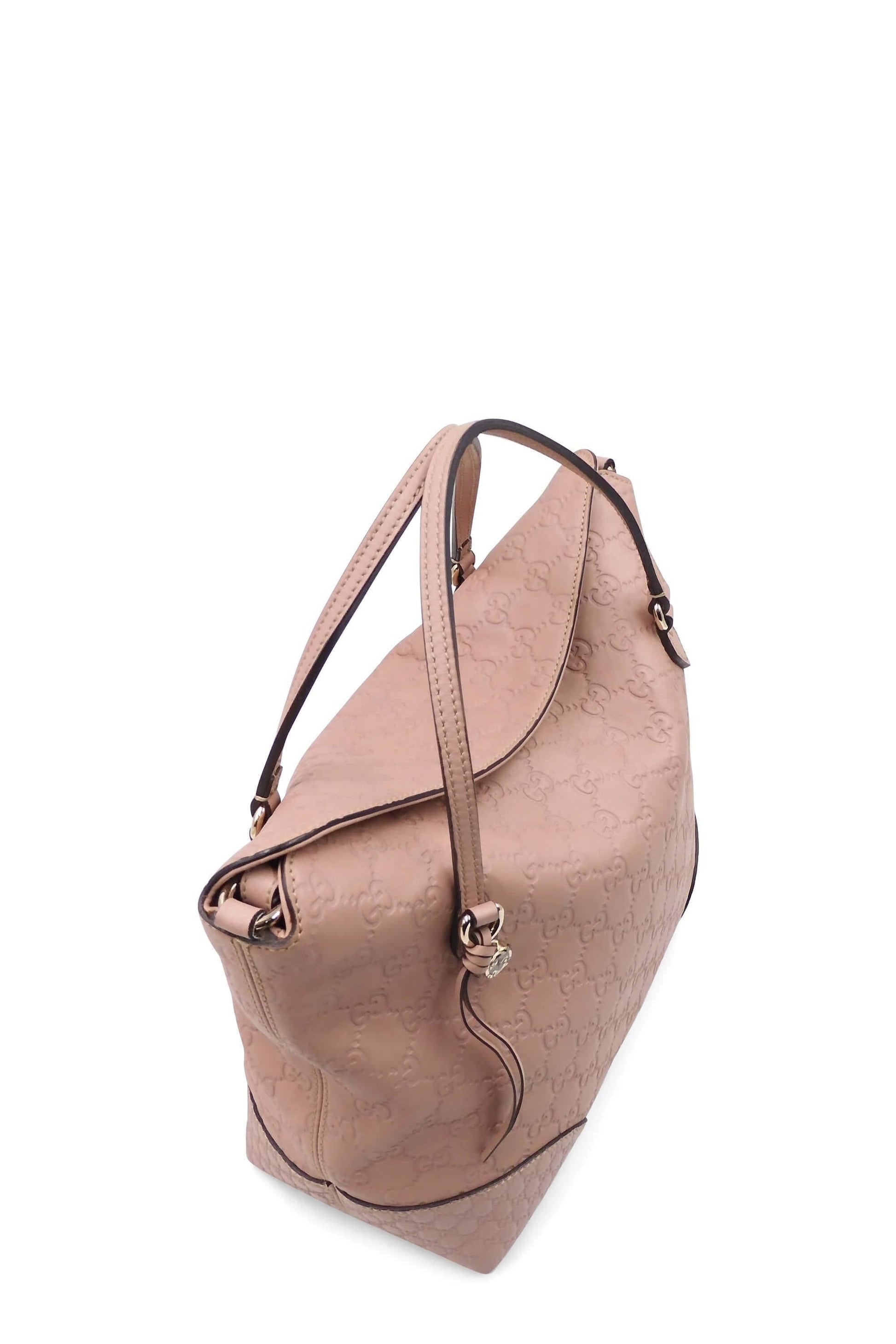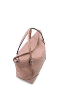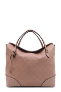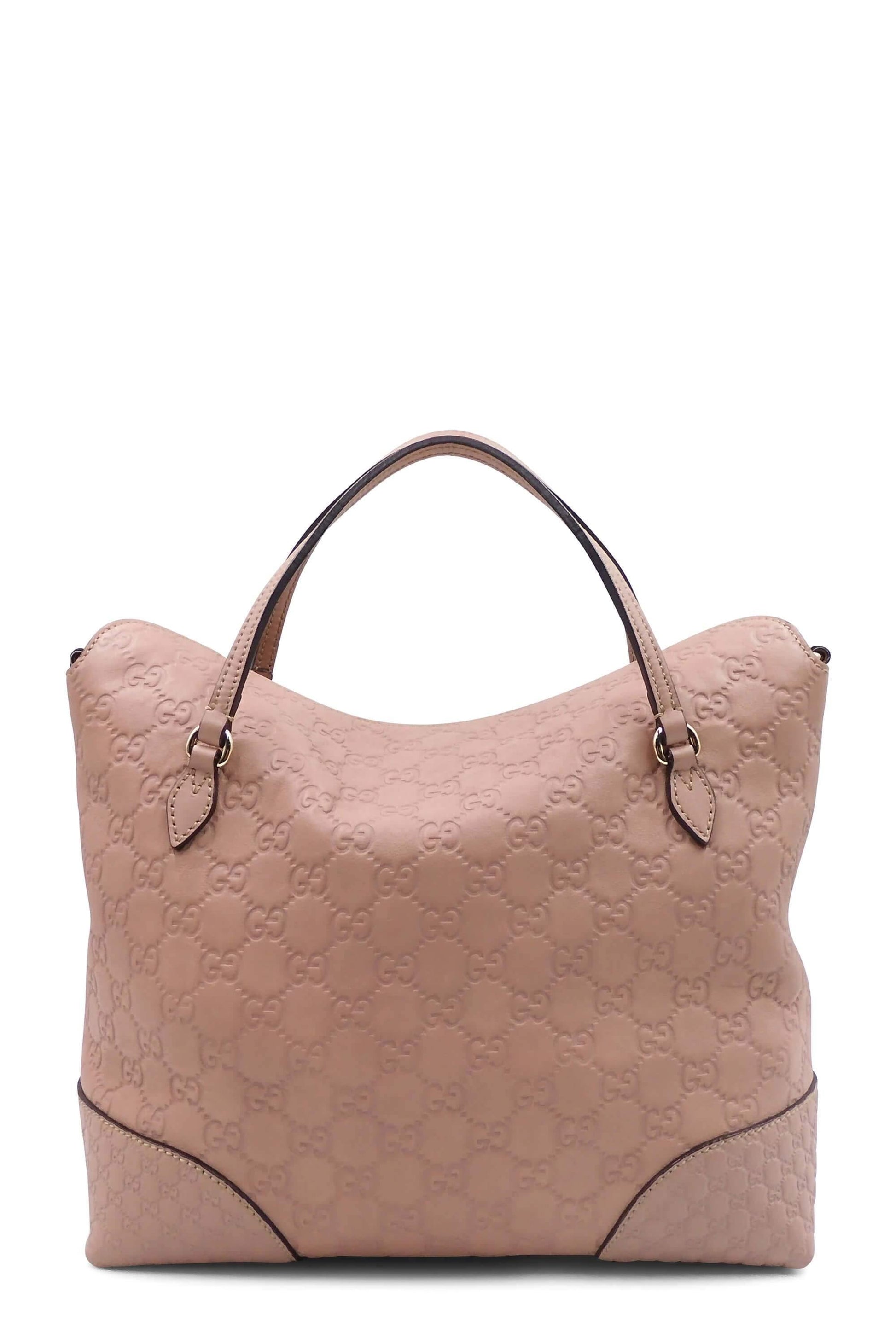 This bag features a leather body, flat leather handles, fold over top with magnet closure and interior zip and slip pockets.