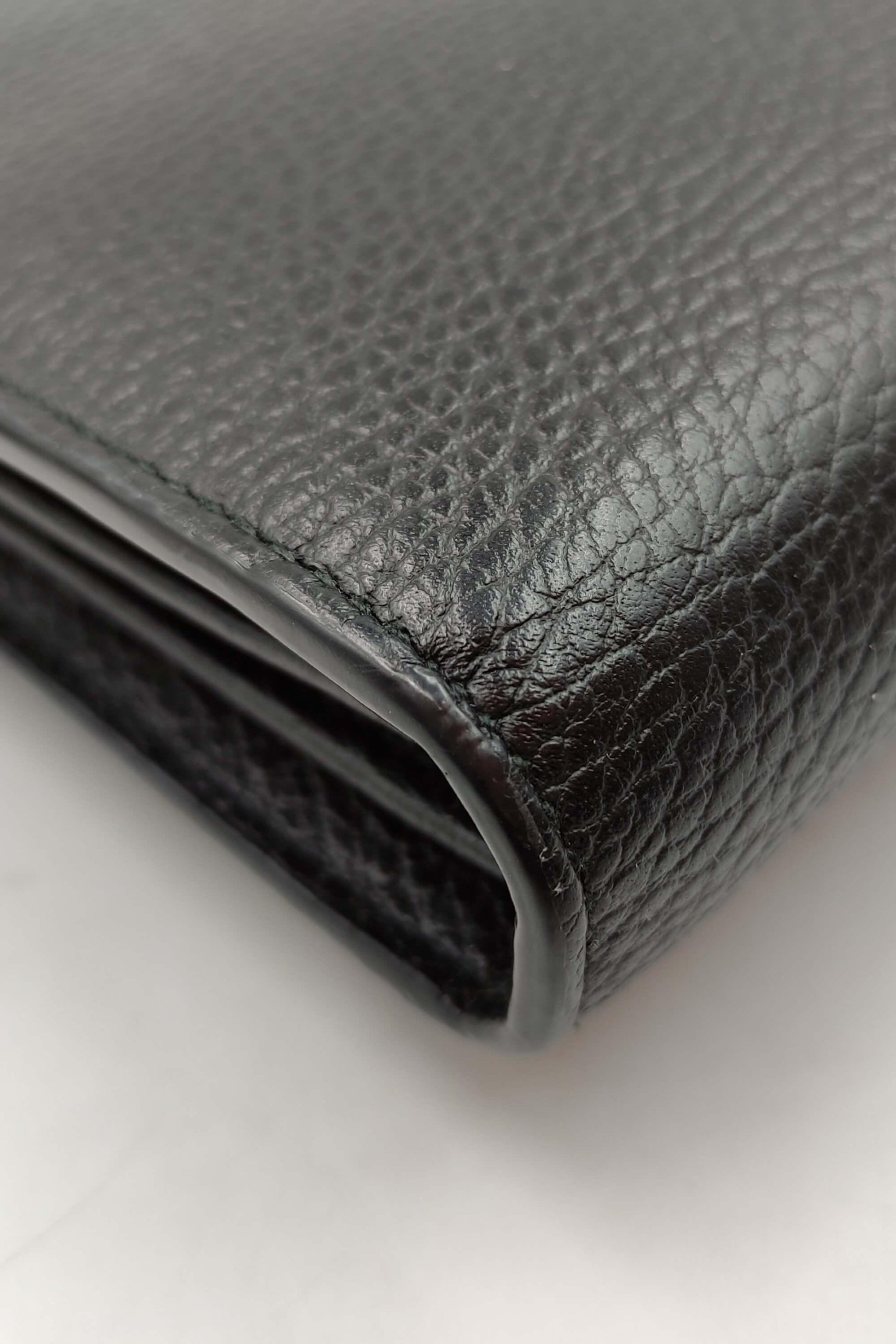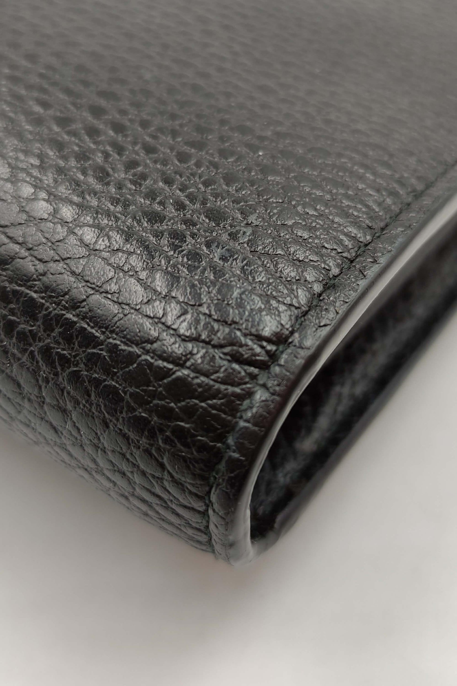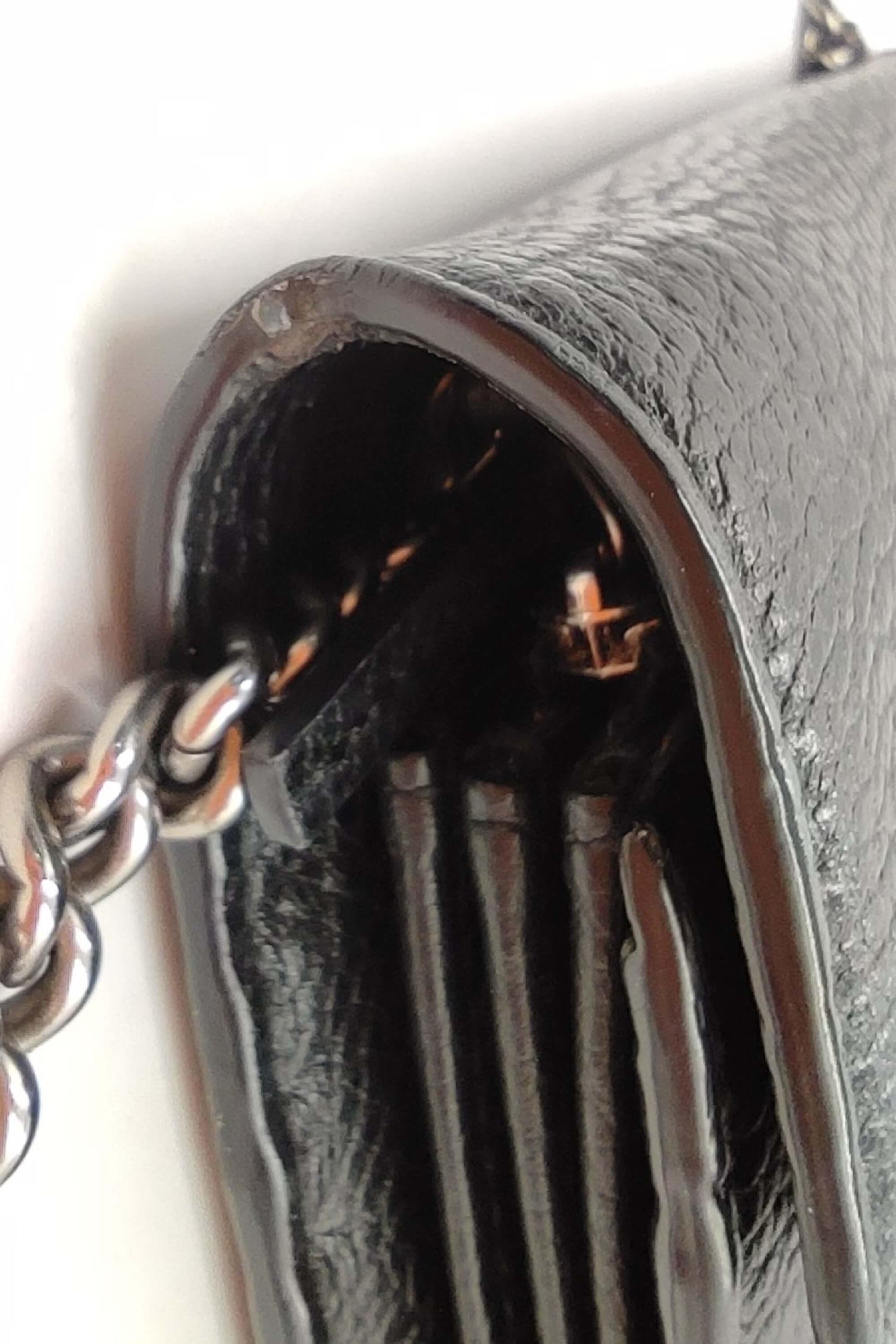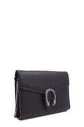 This Gucci Mini Dionysus Wallet On Chain is crafted of calfskin leather in black. The classic bag features a signature tiger head spur, detachable chain-link shoulder strap and silver-tone hardware. The press-stud fastening opens to a fabric lining with card slots and three internal compartments.