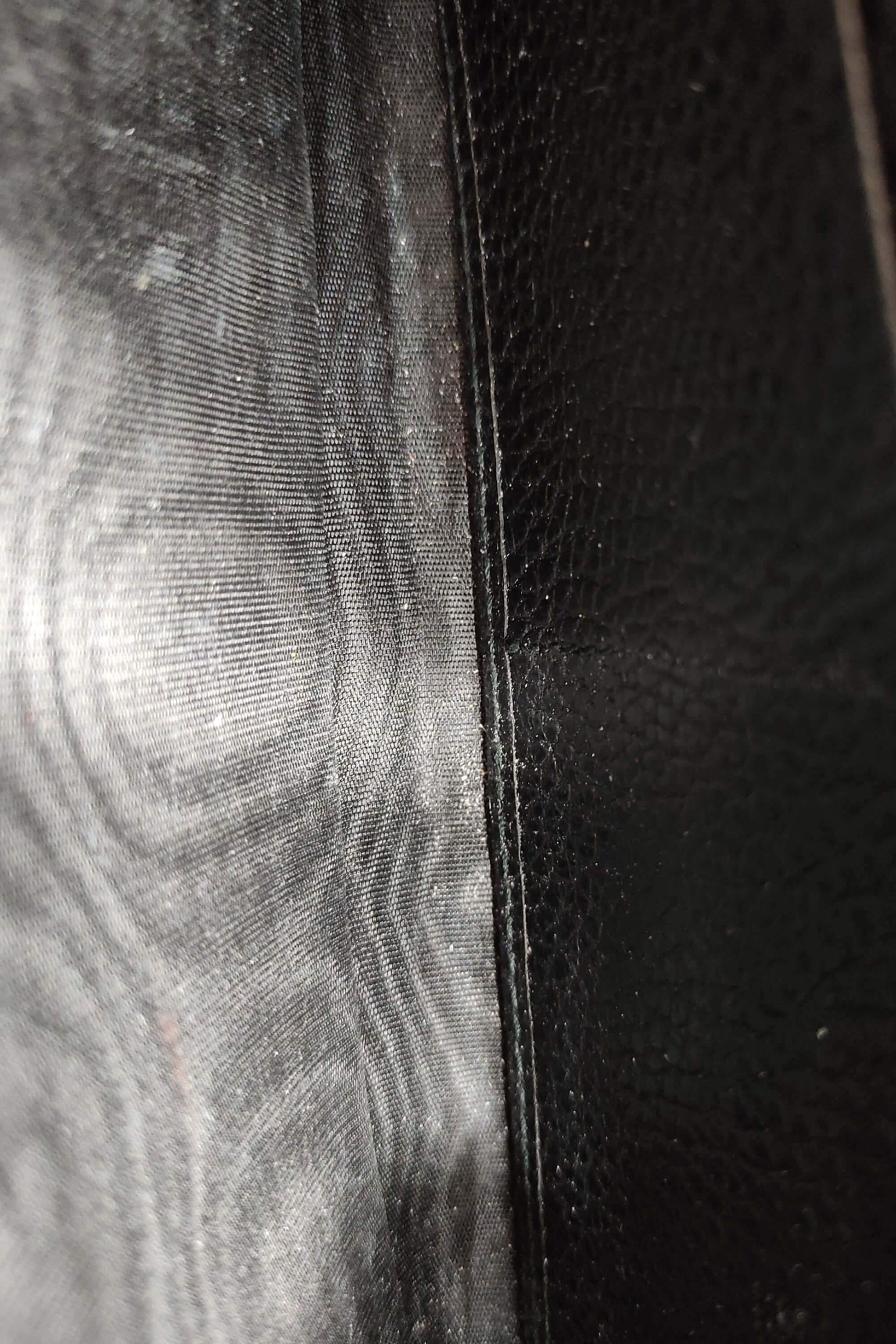 Slight peeling on top left edging. Pink powder on interior pocket.