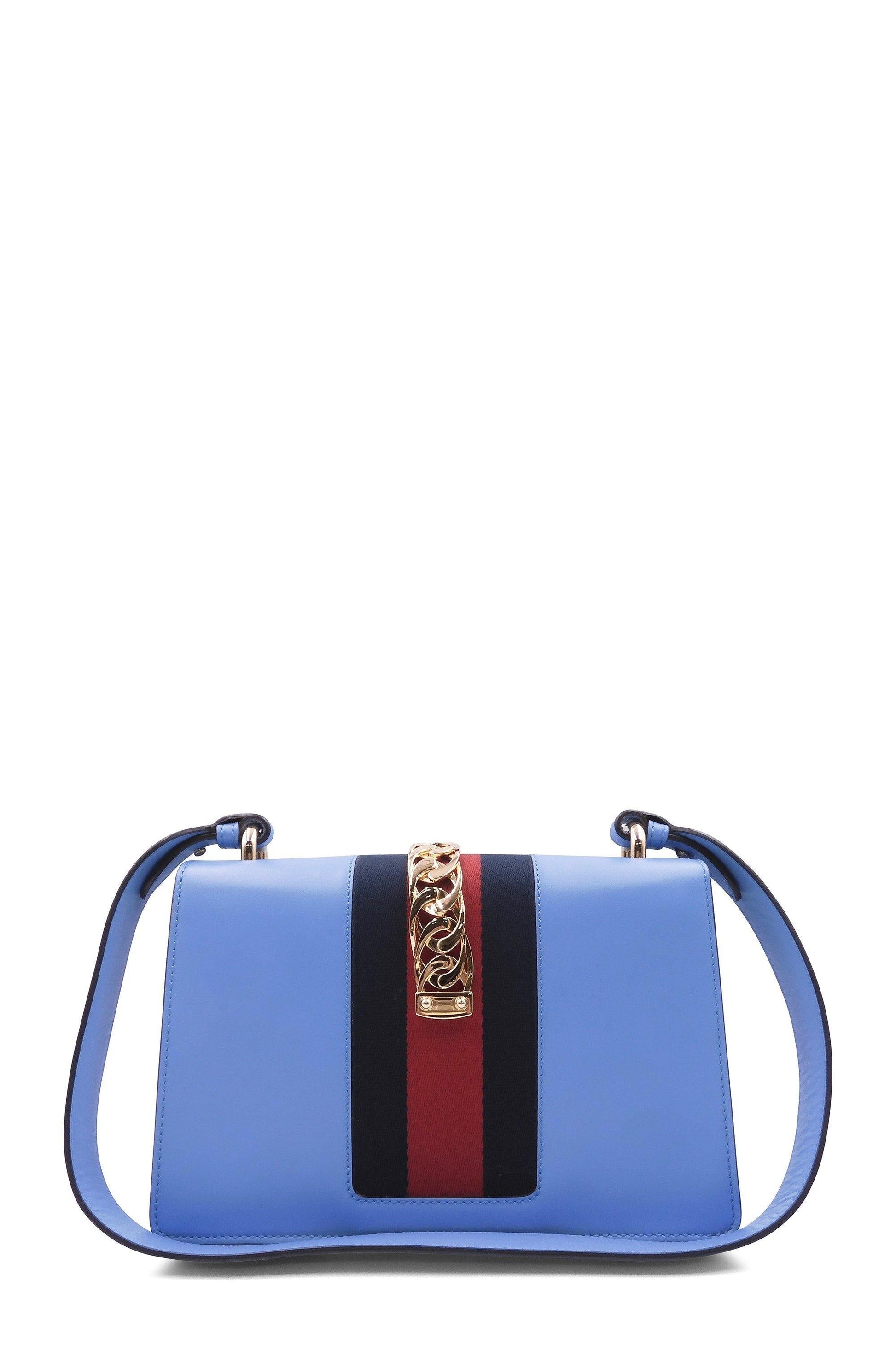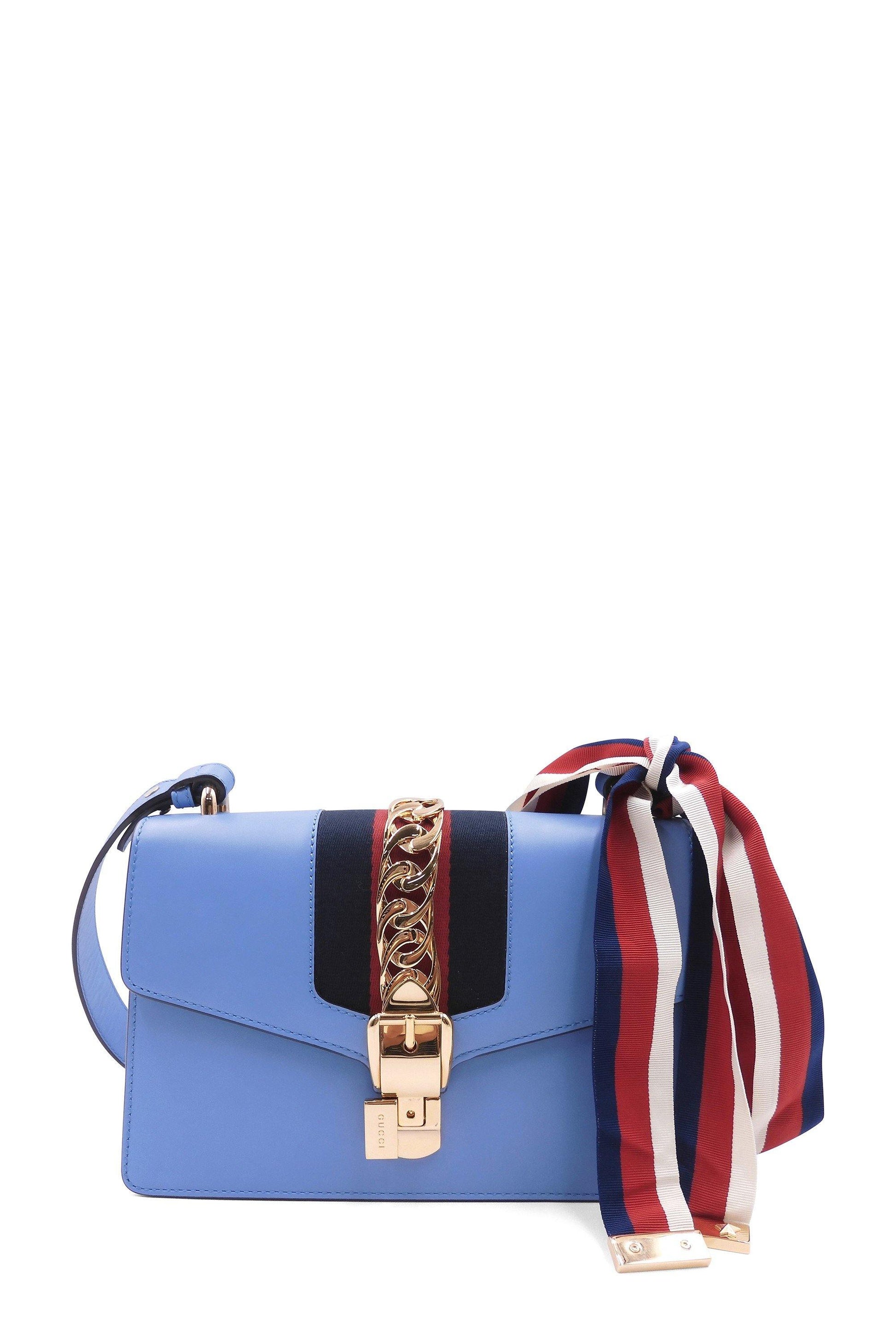 A playful mix of House codes, the Sylvie shoulder bag combines a gold metal chain and buckle with contrasting Web stripe details. The signature Gucci shape from the '60s and '70s is brought back from the archives in a modern iteration.