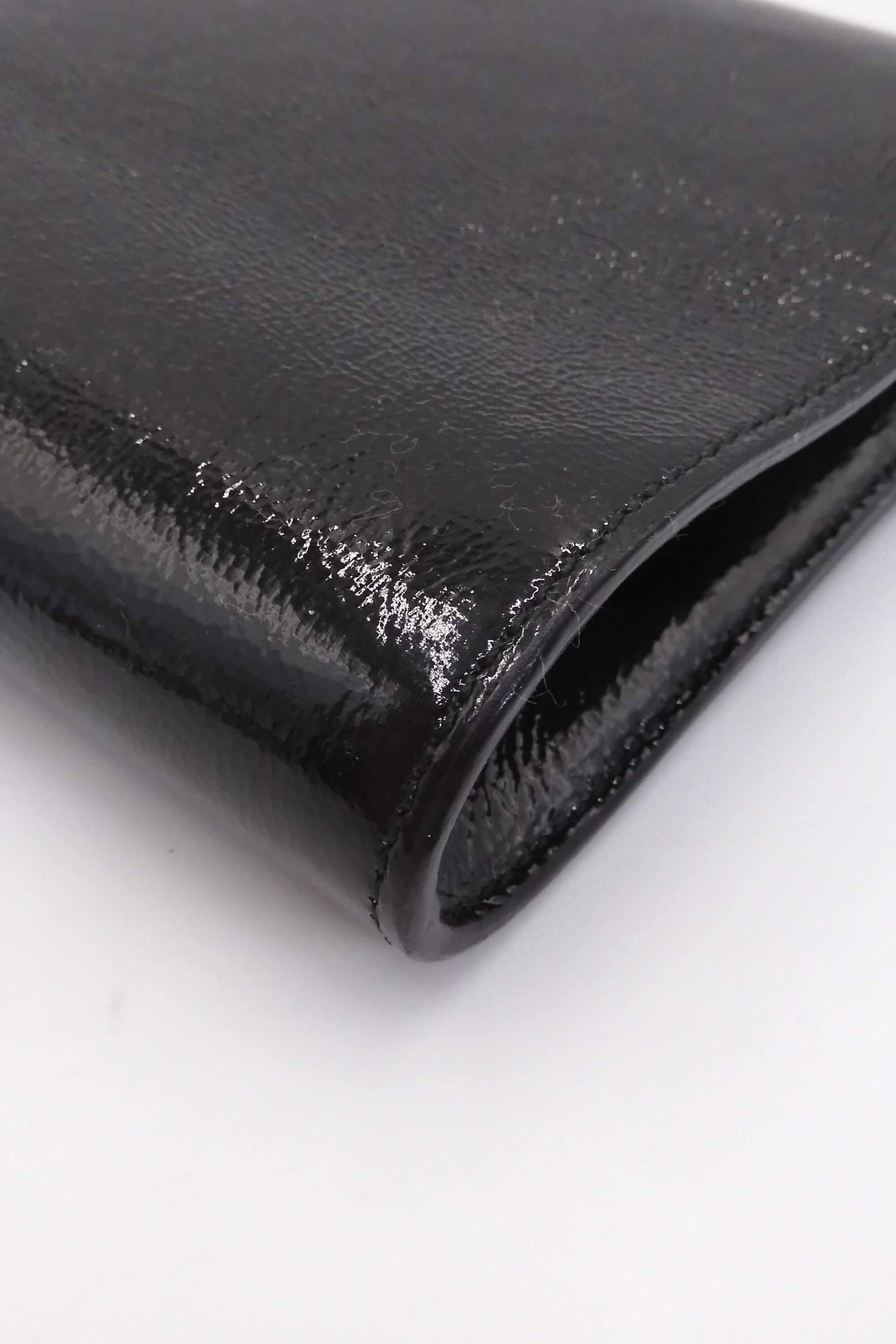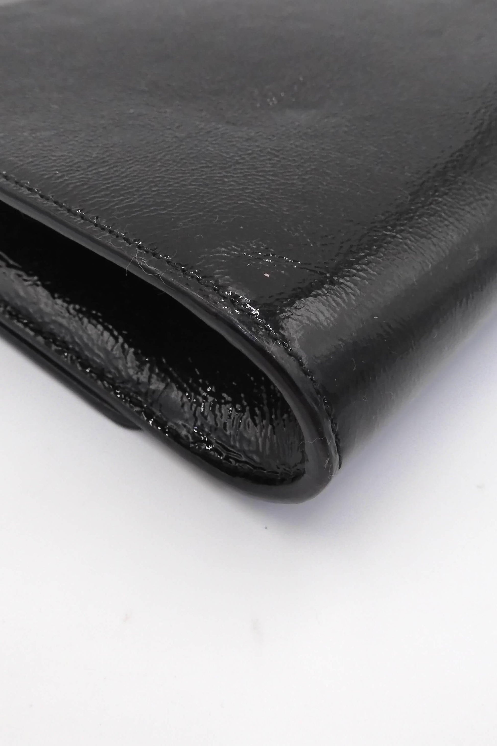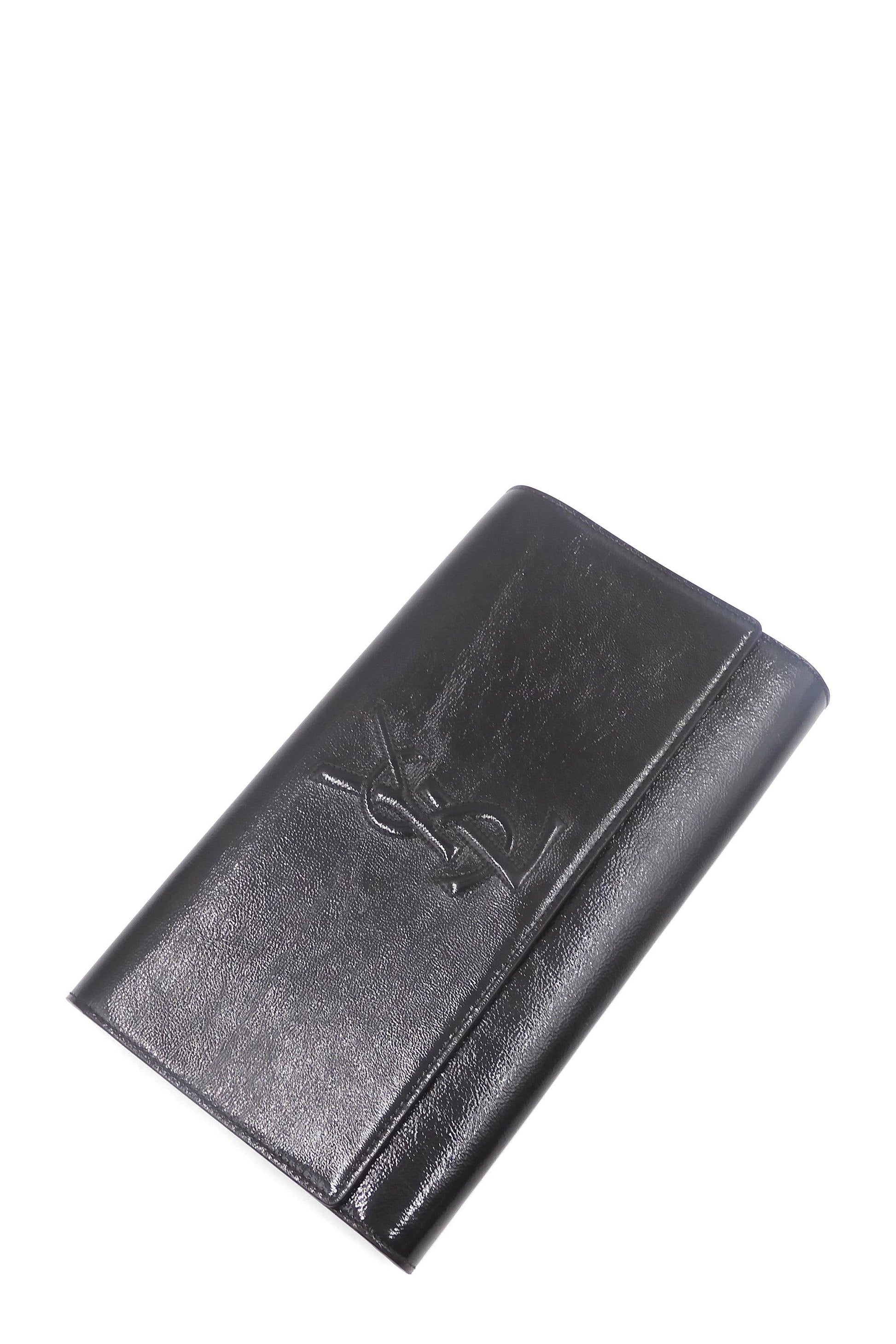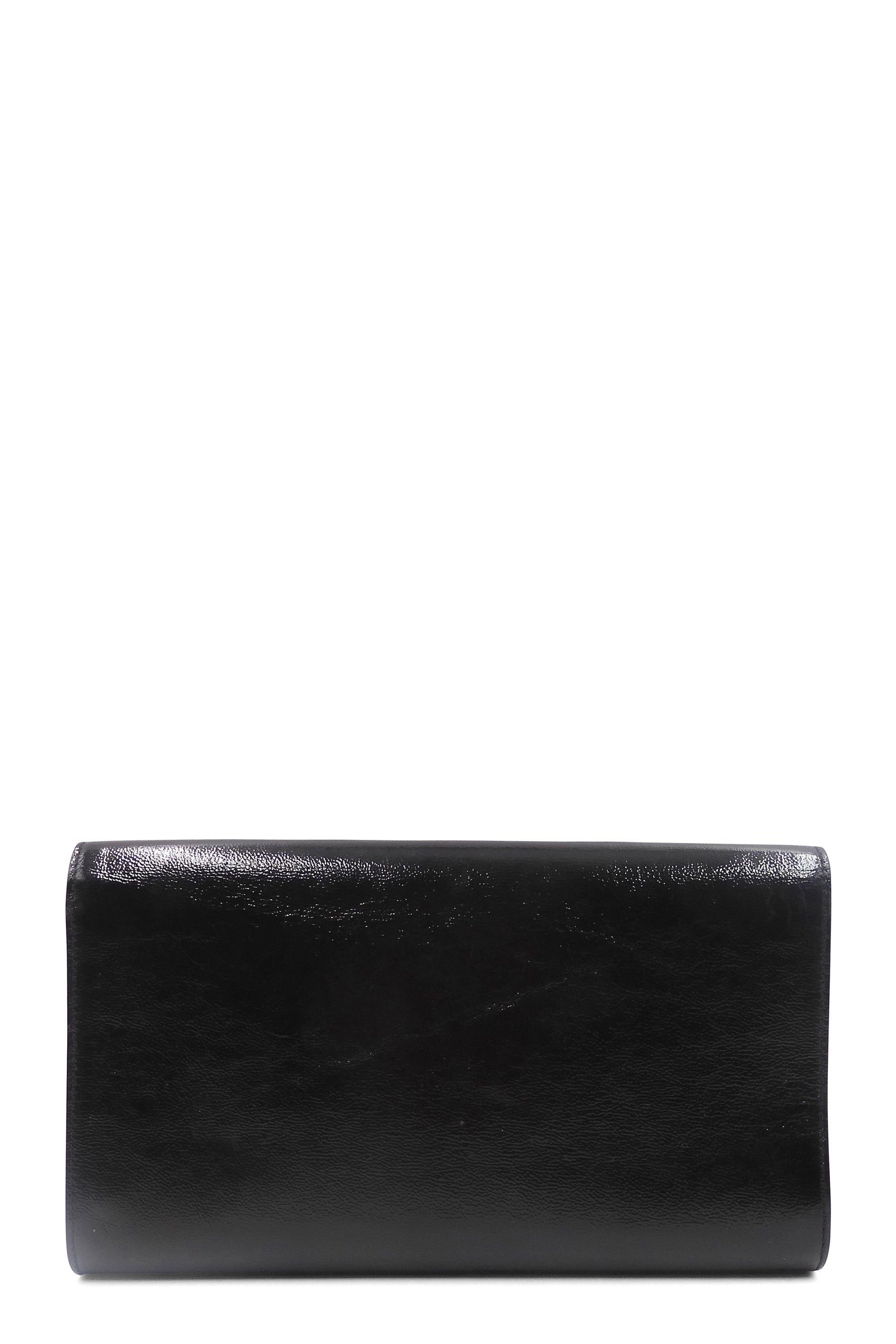 This leather classic monogram clutch in black is an essential accessory piece and features a foldover top with clasp closure, a front logo.