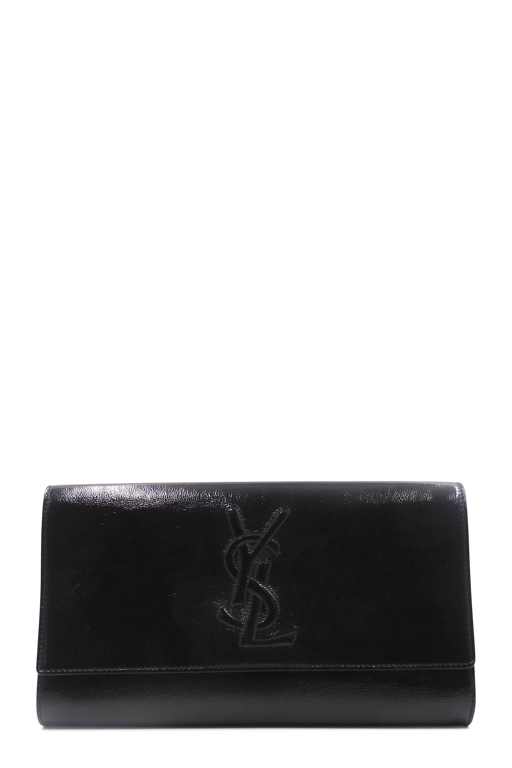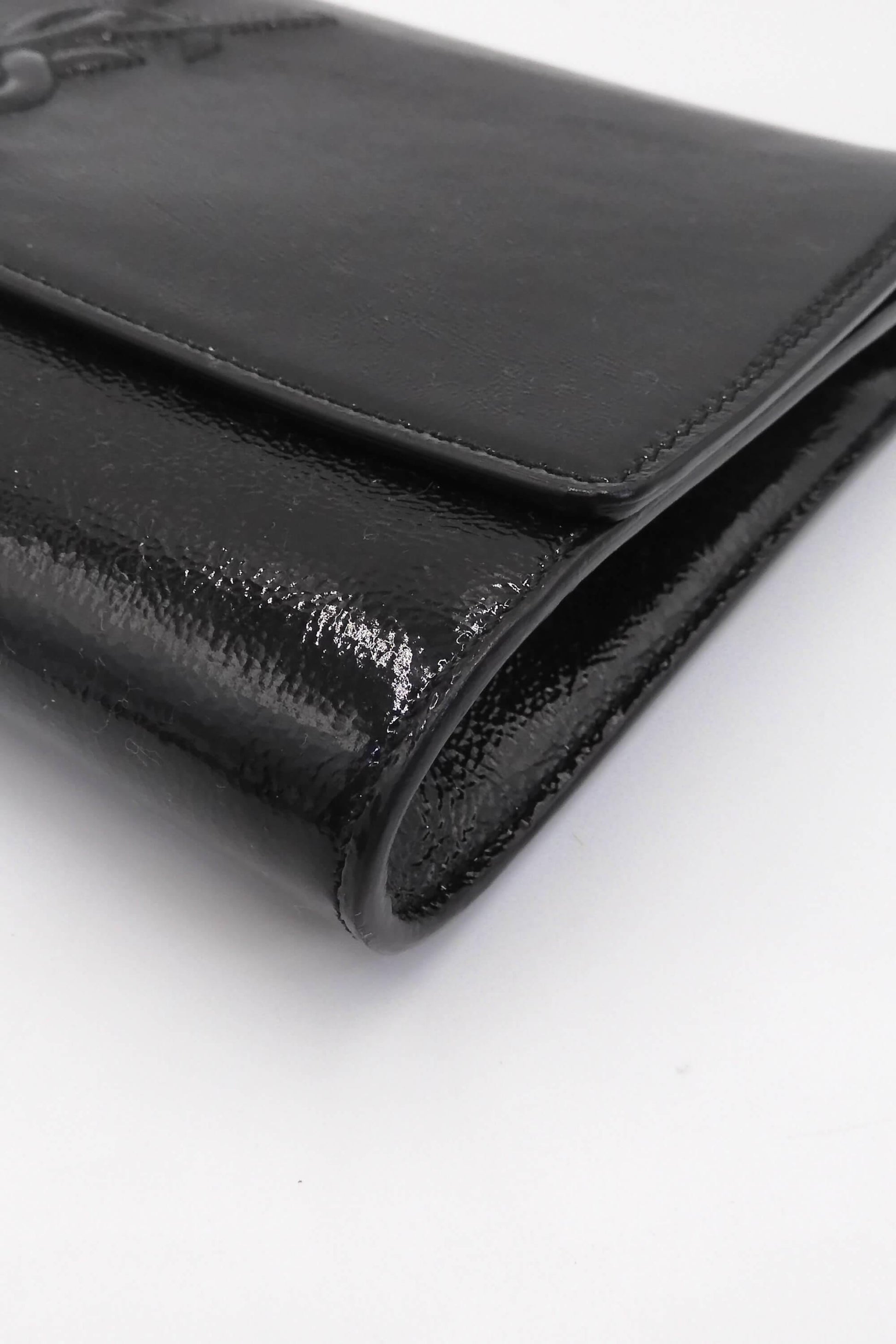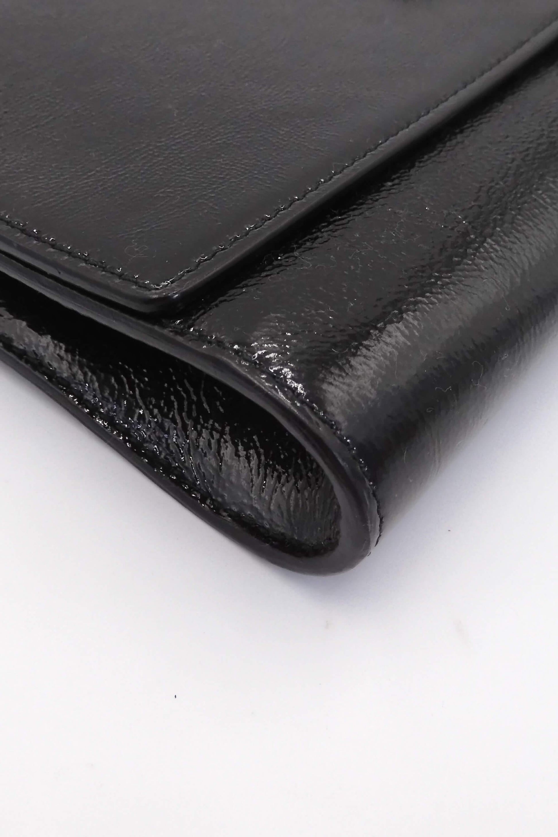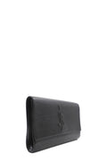 This leather classic monogram clutch in black is an essential accessory piece and features a foldover top with clasp closure, a front logo.