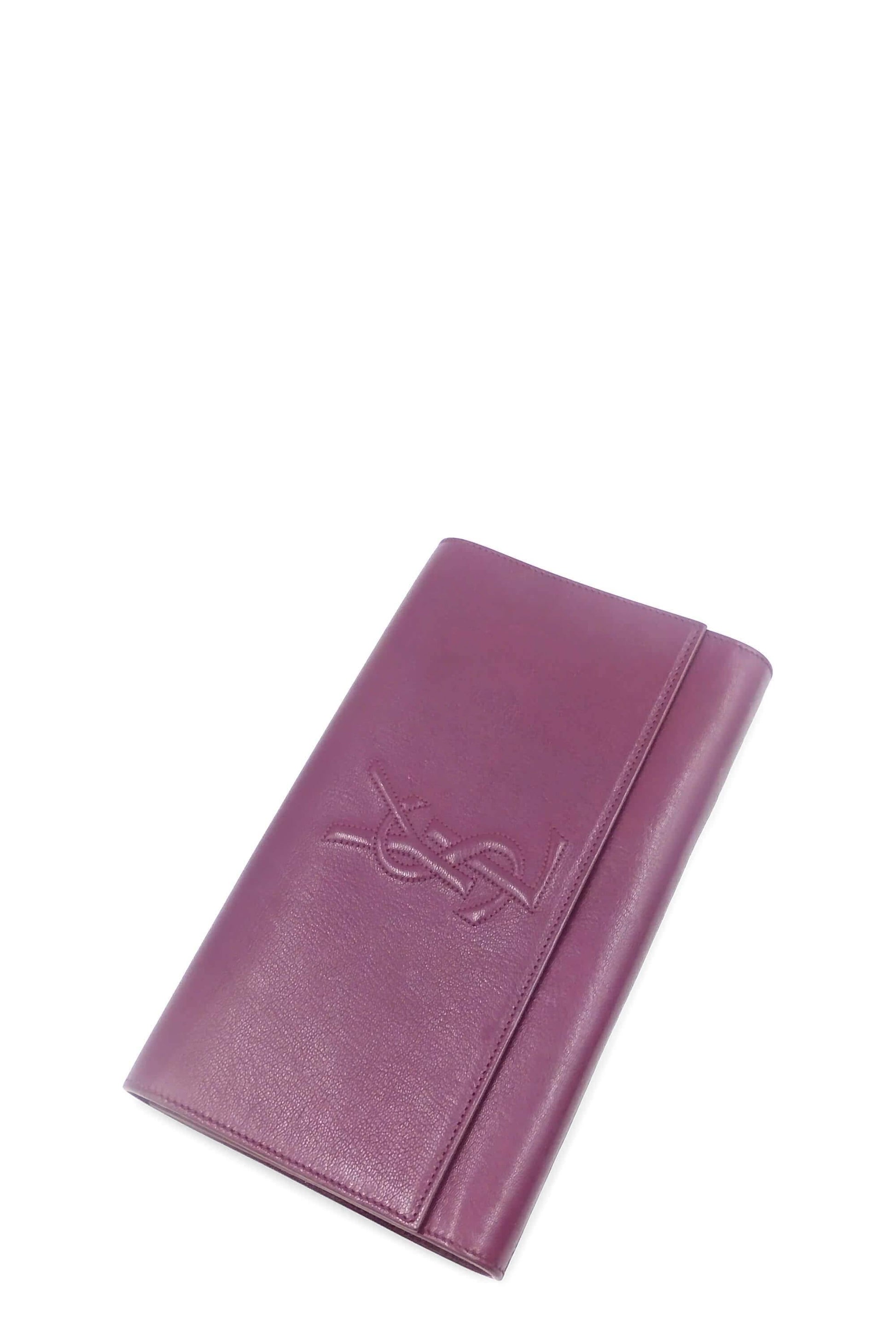 This leather classic monogram clutch is an essential accessory piece and features a foldover top with clasp closure, a front logo.