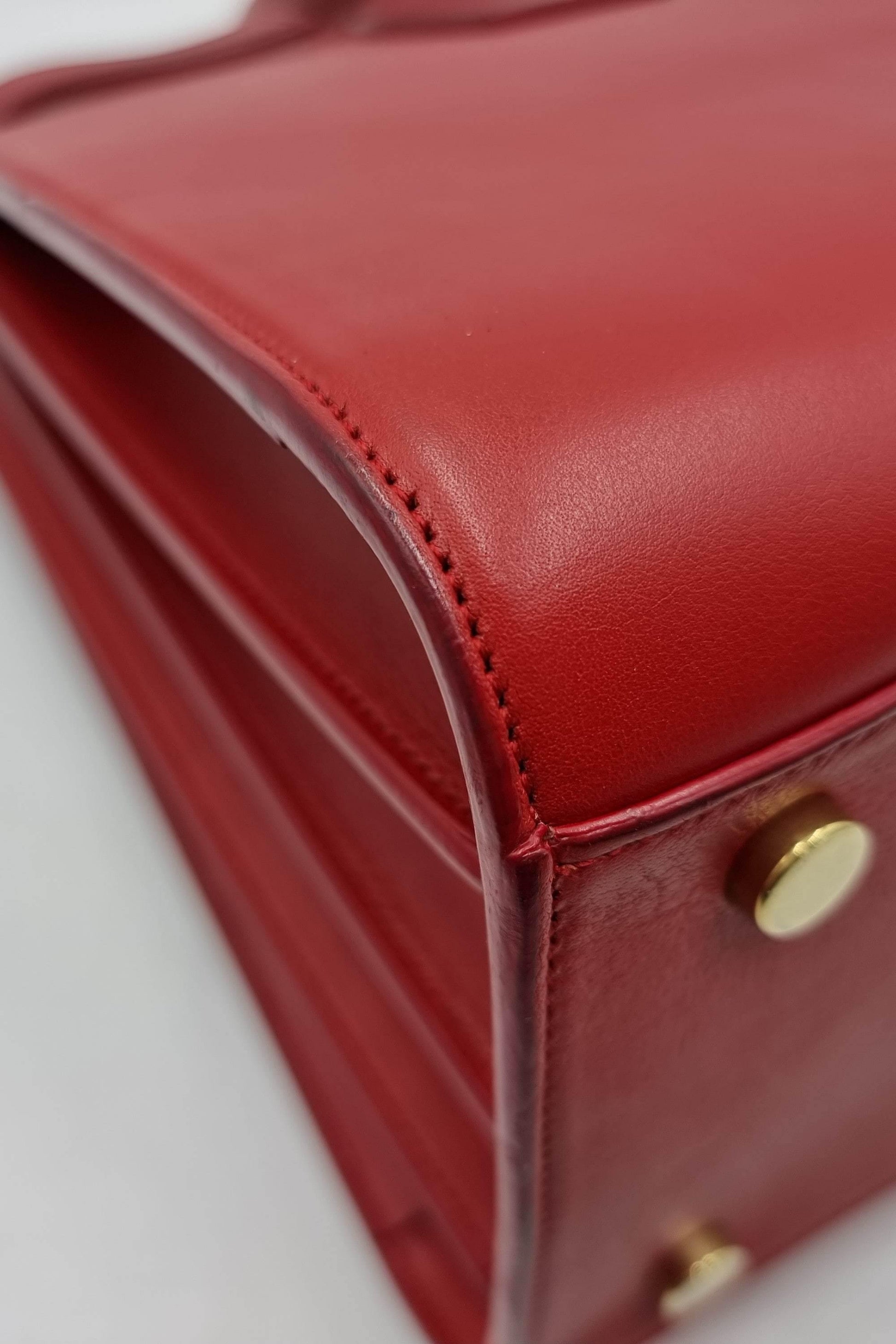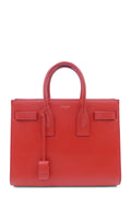 Iconic Saint Laurent's Sac De Jour is crafted from luxurious leather in red. Practical spacious bag with accordion sides and soft suede interior.
