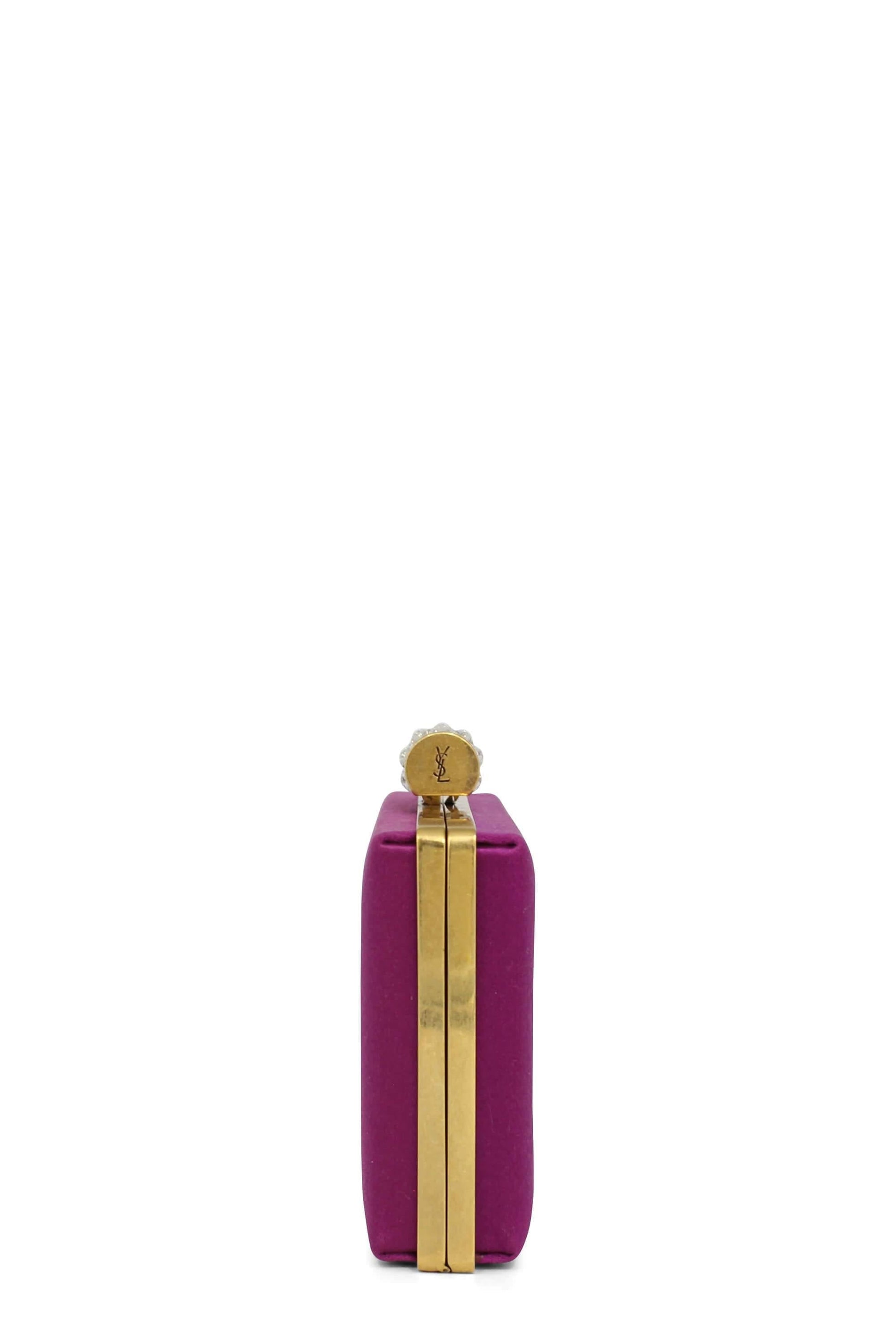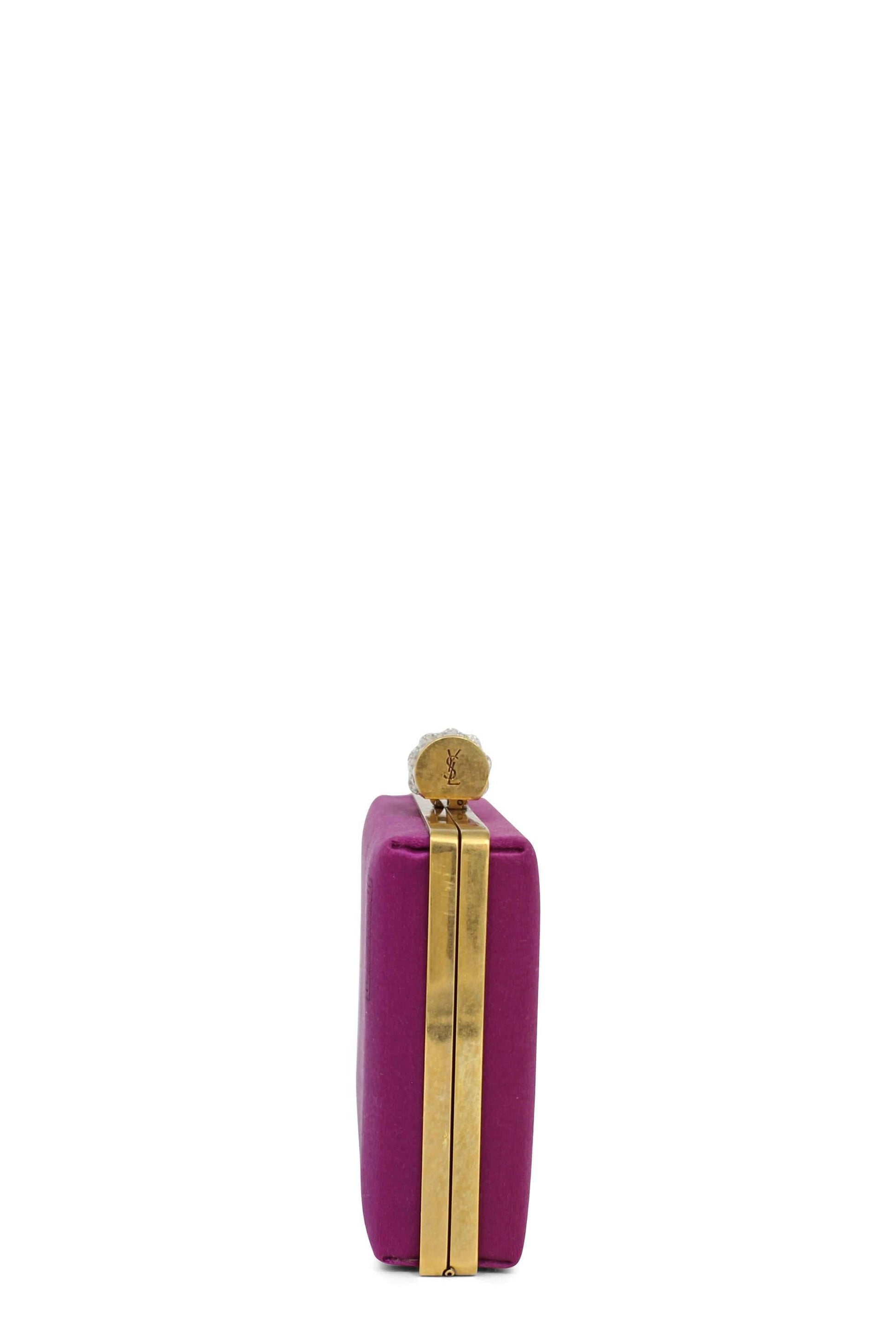 While many of the YSL handbags play it safe, the Yves Saint Laurent Minaudiere Satin Clutch goes out on a limb to bring a different look for a fun handbag. This box clutch is designed with refined satin and sports the YSL address print detail on the front, giving the clutch the resemblance of a letter. There is a rhinestone twist-lock closure and two open interior pockets.