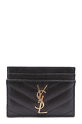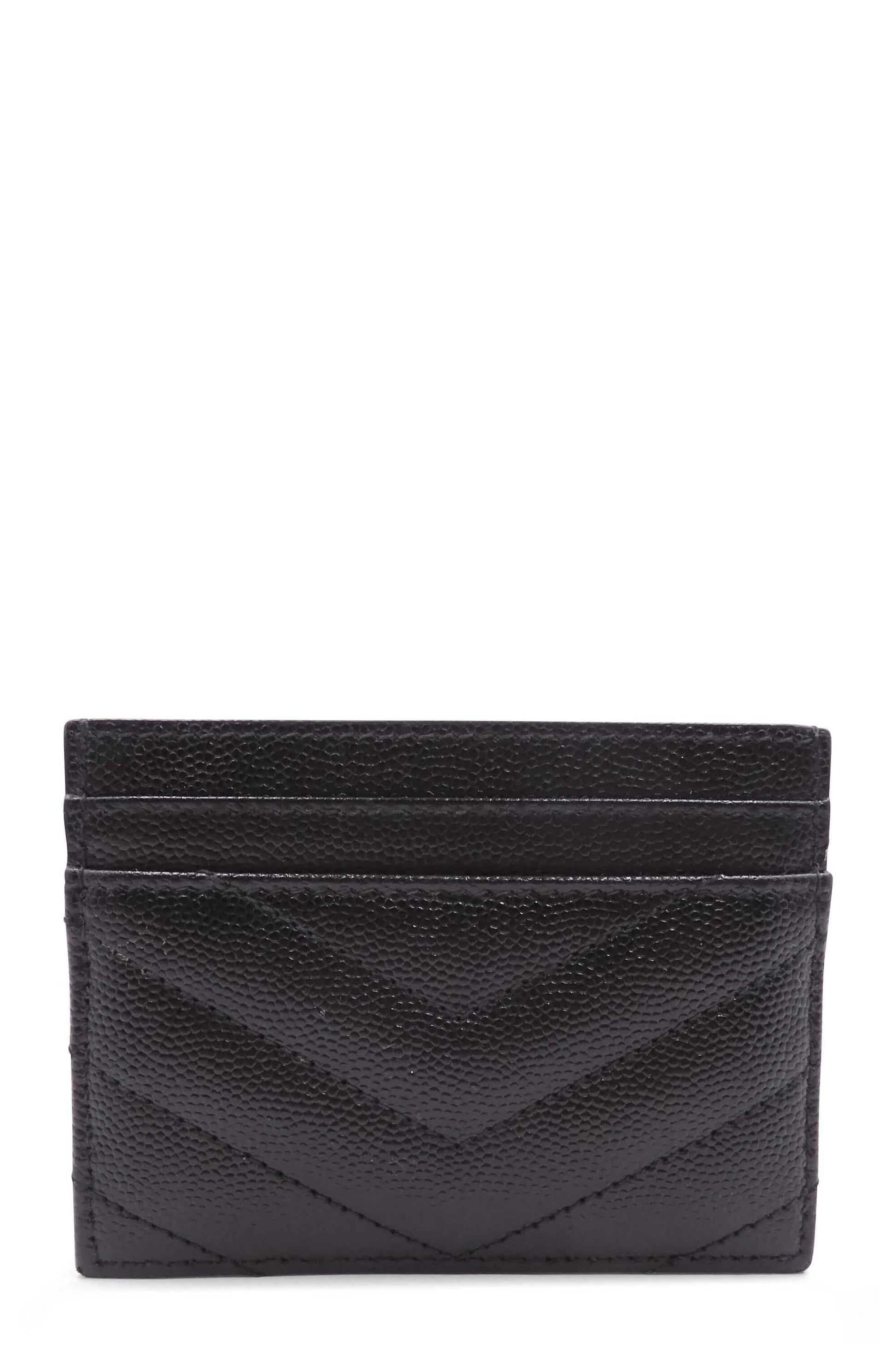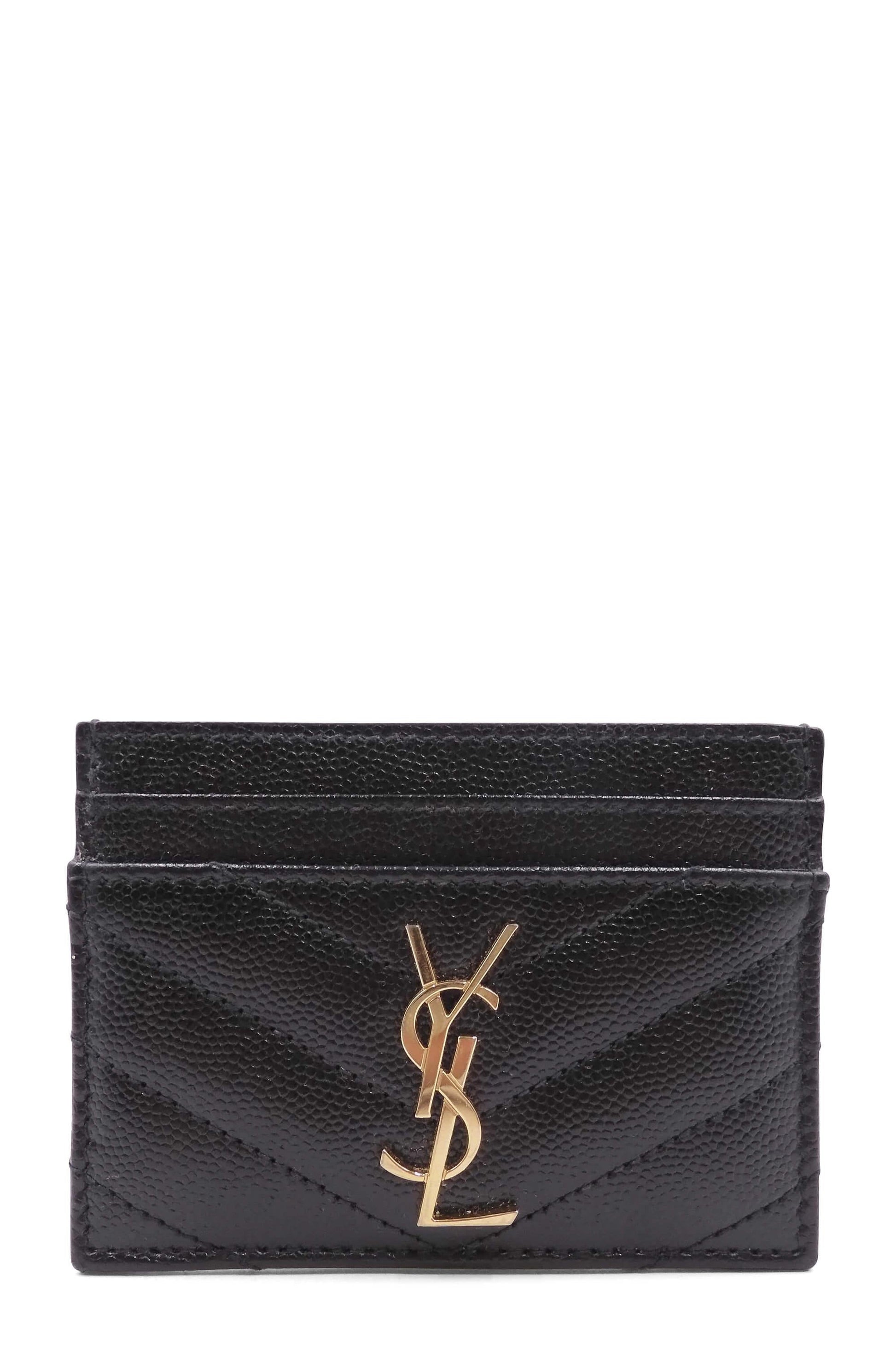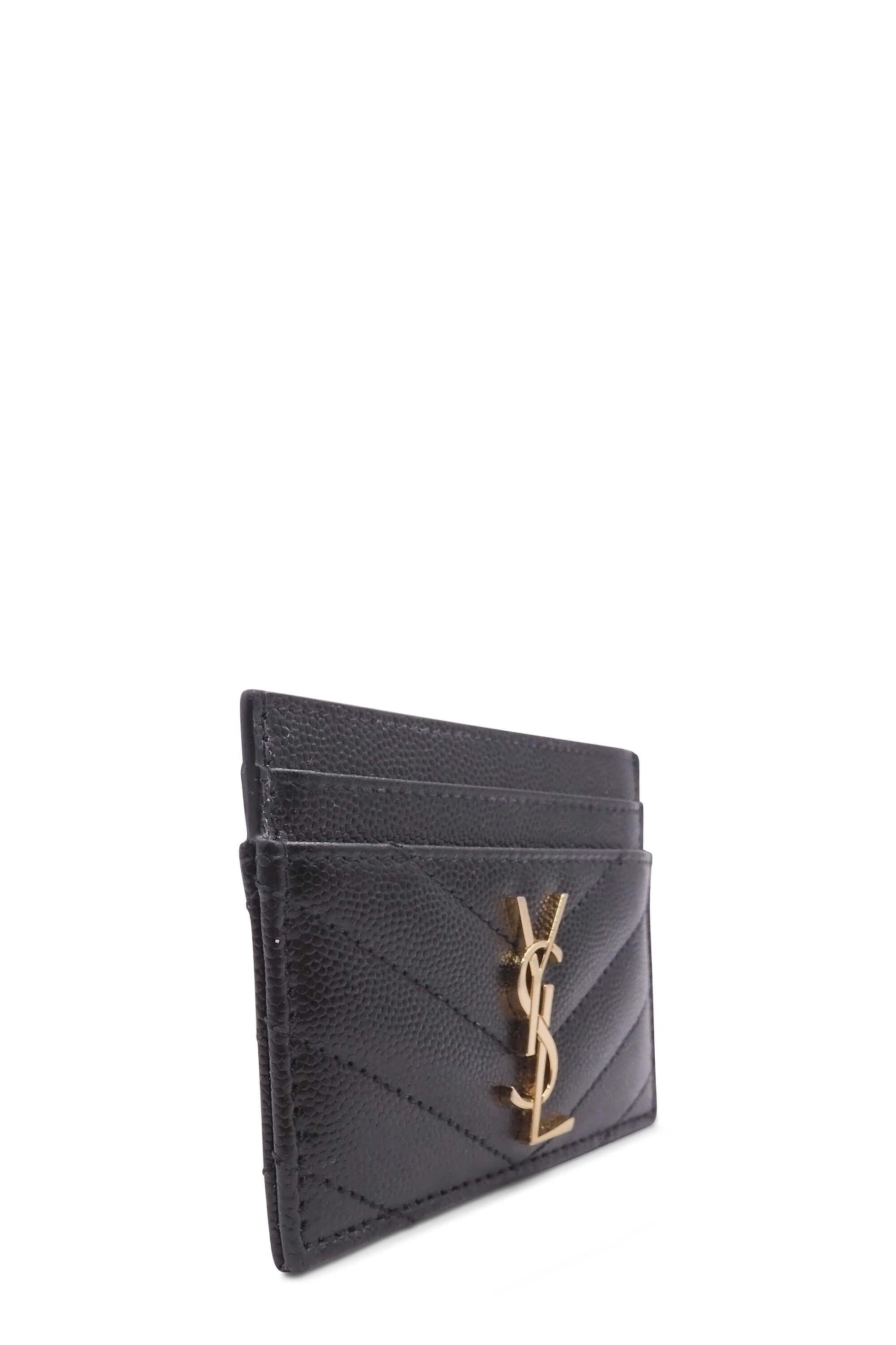 This cardholder features a grained leather body, gold-tone logo hardware, and slip compartments.