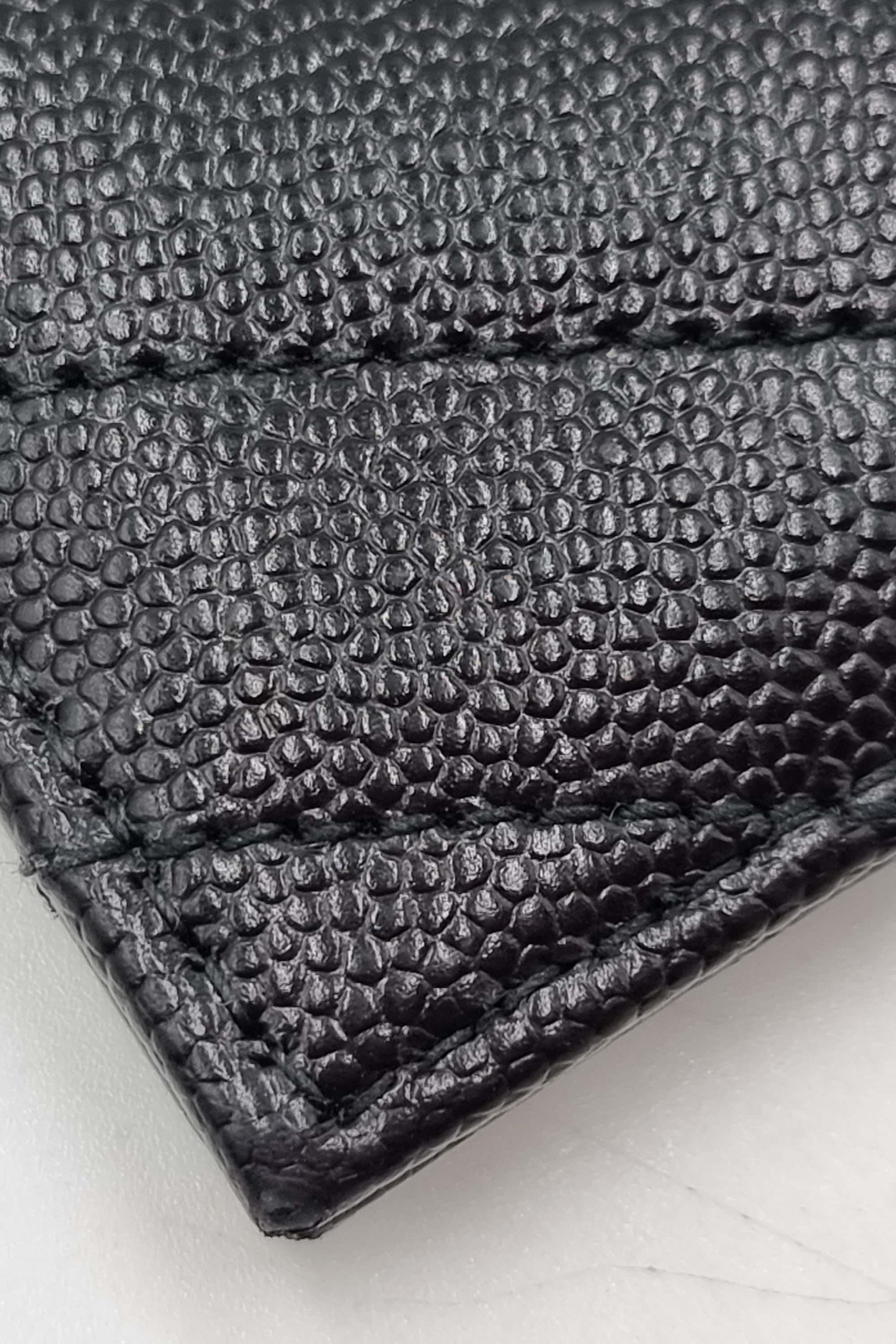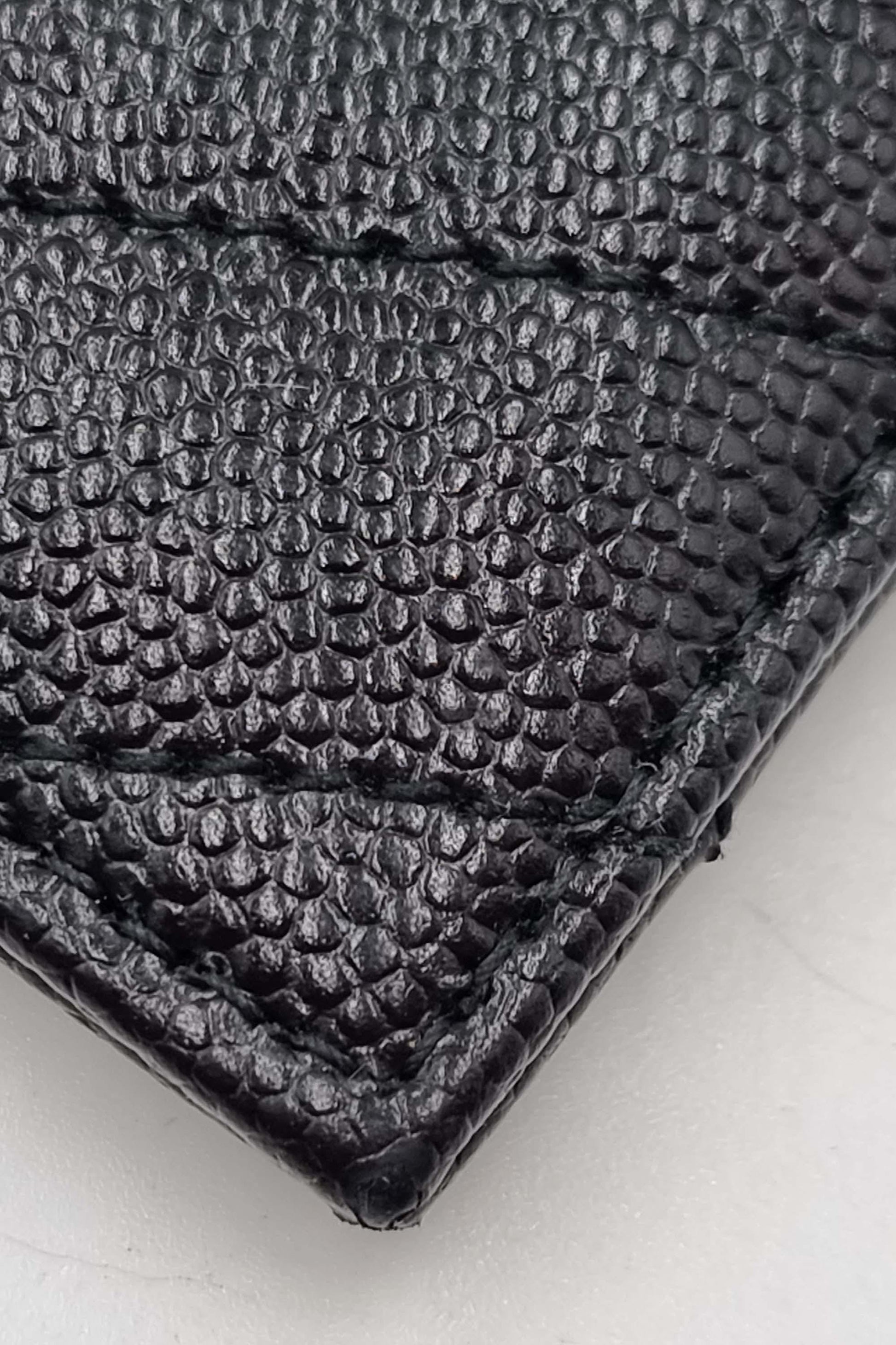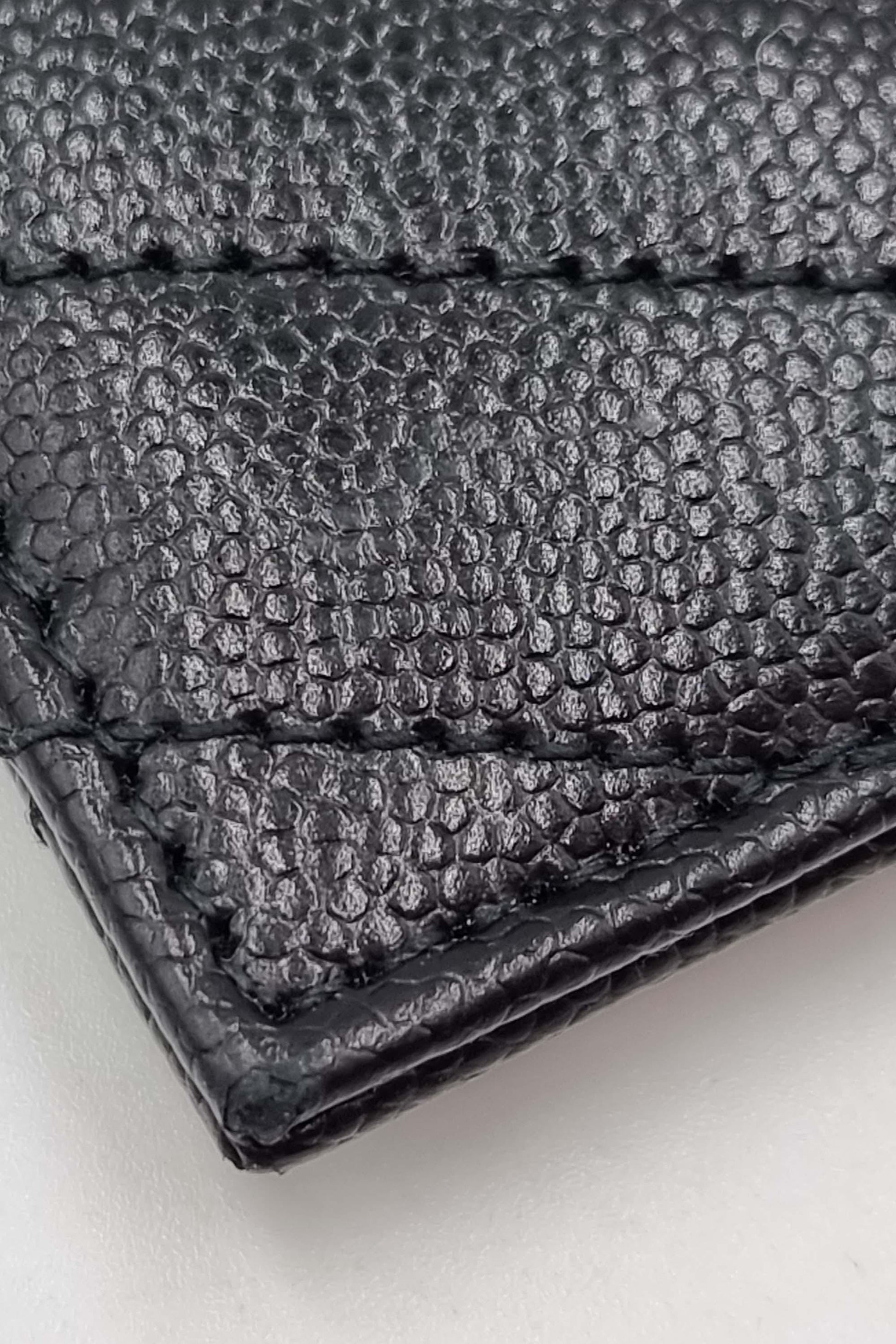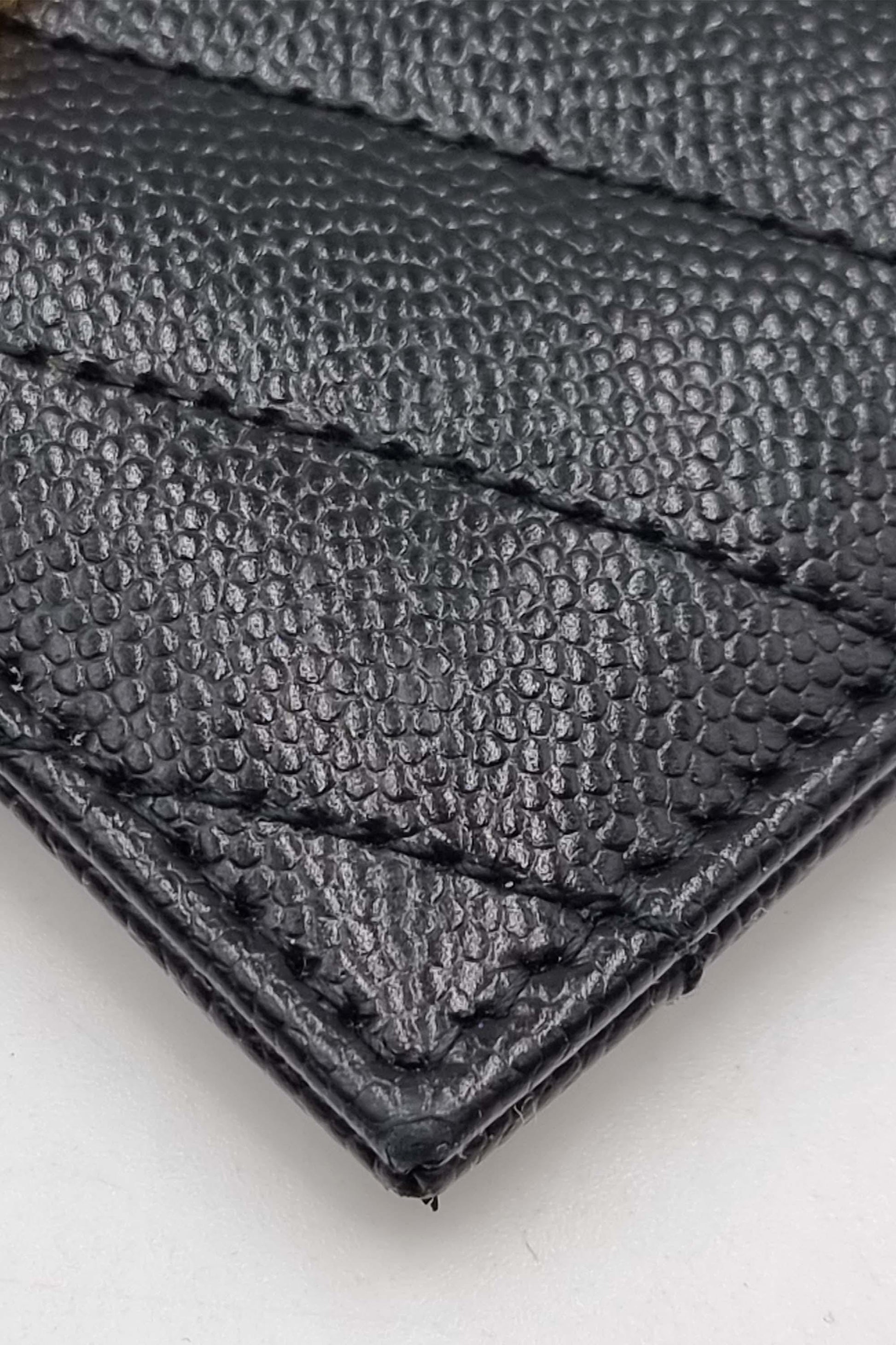 This cardholder features a grained leather body, gold-tone logo hardware, and slip compartments.
