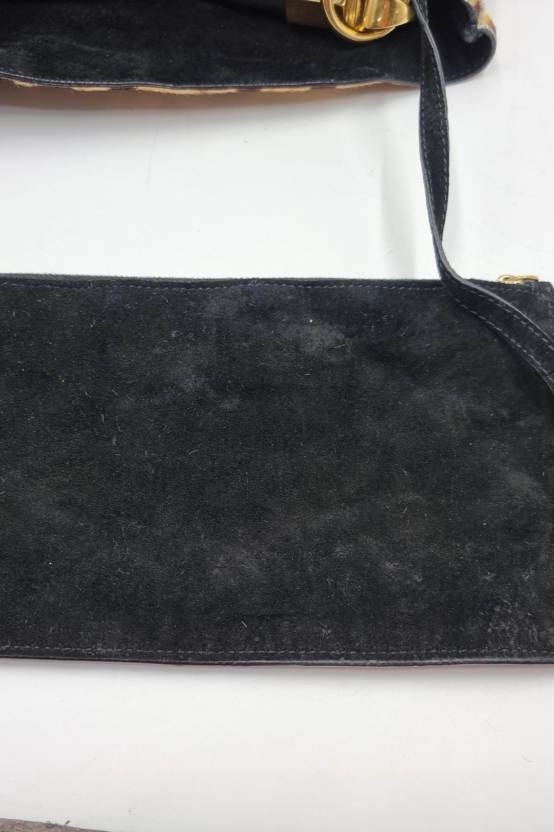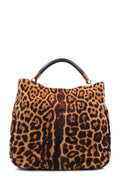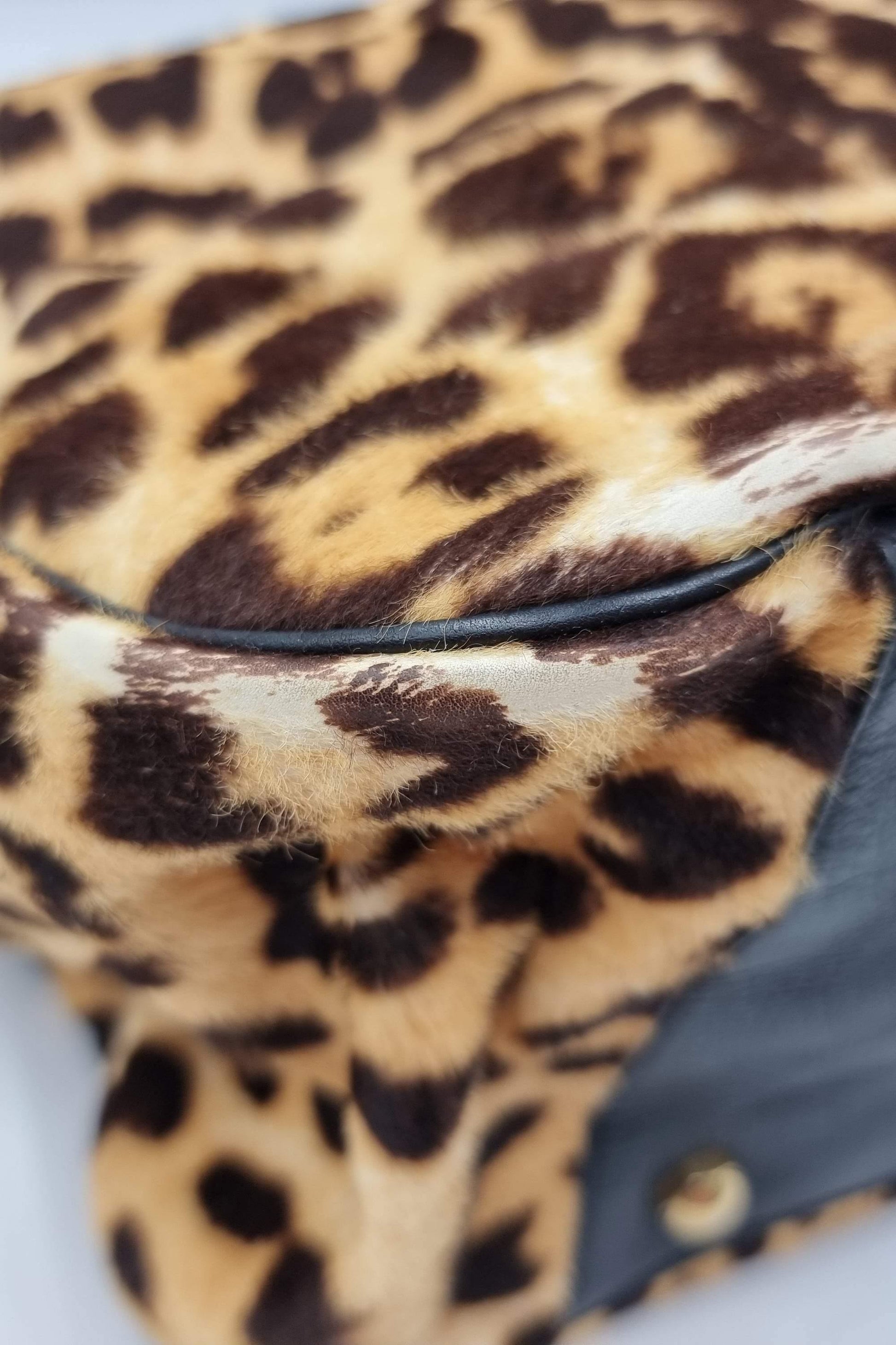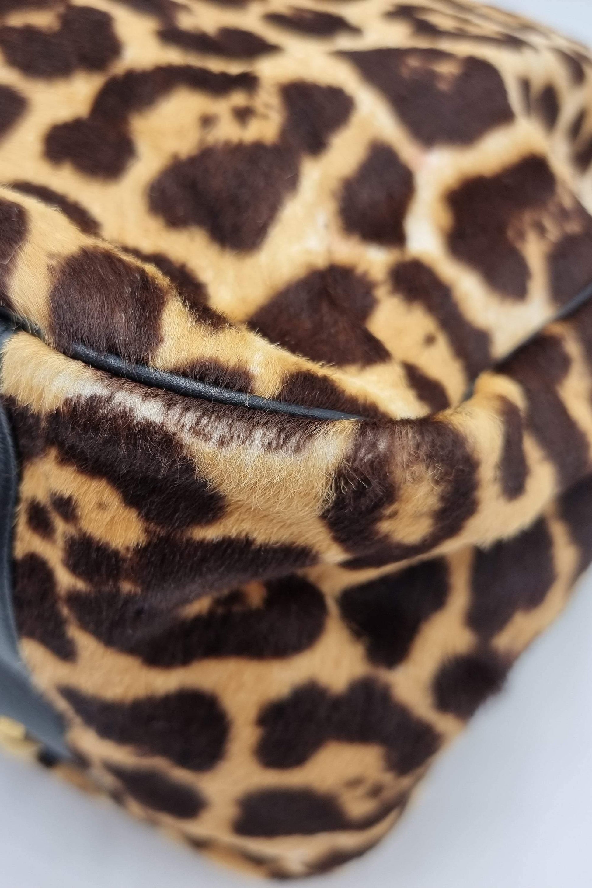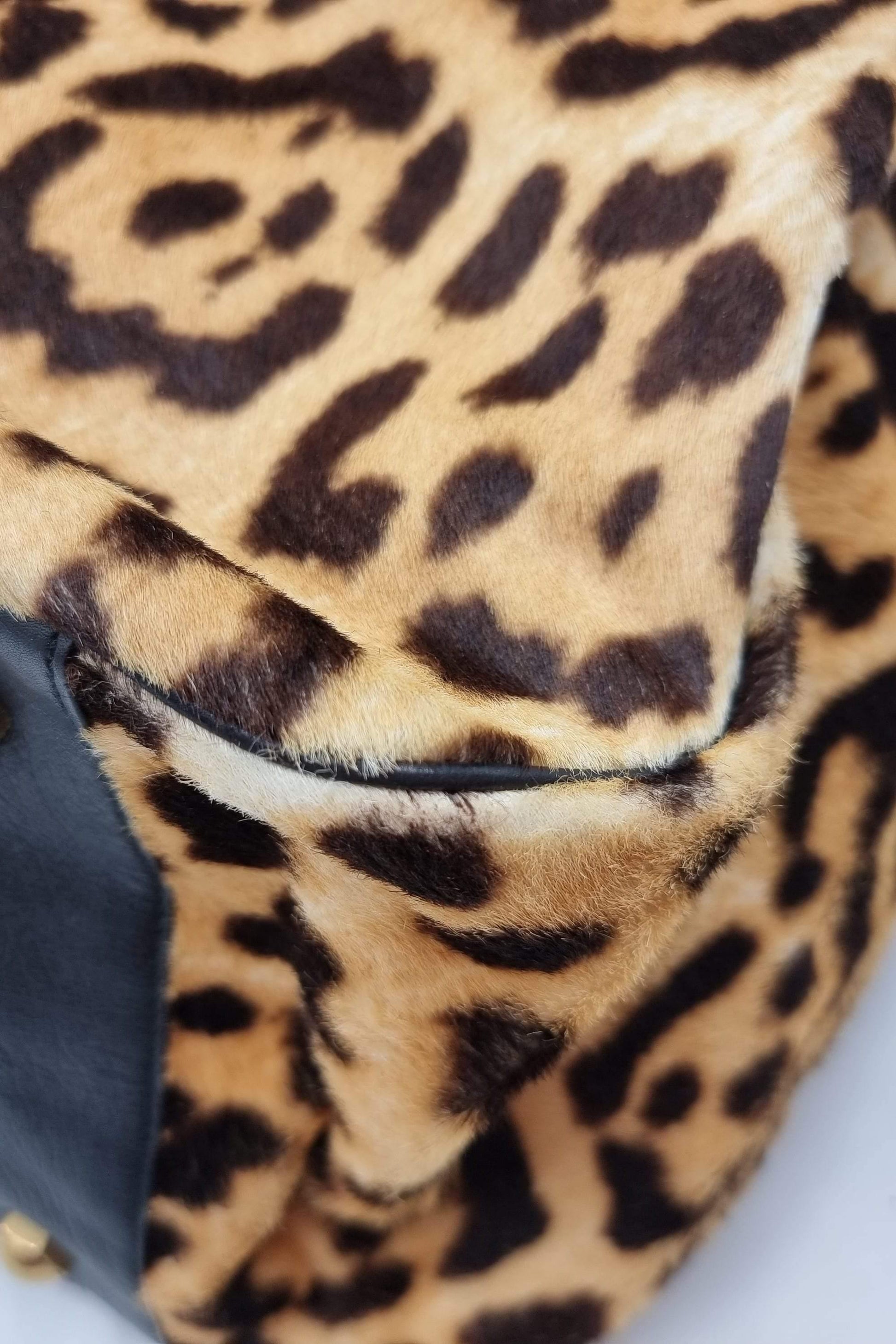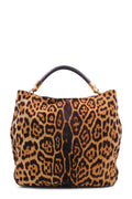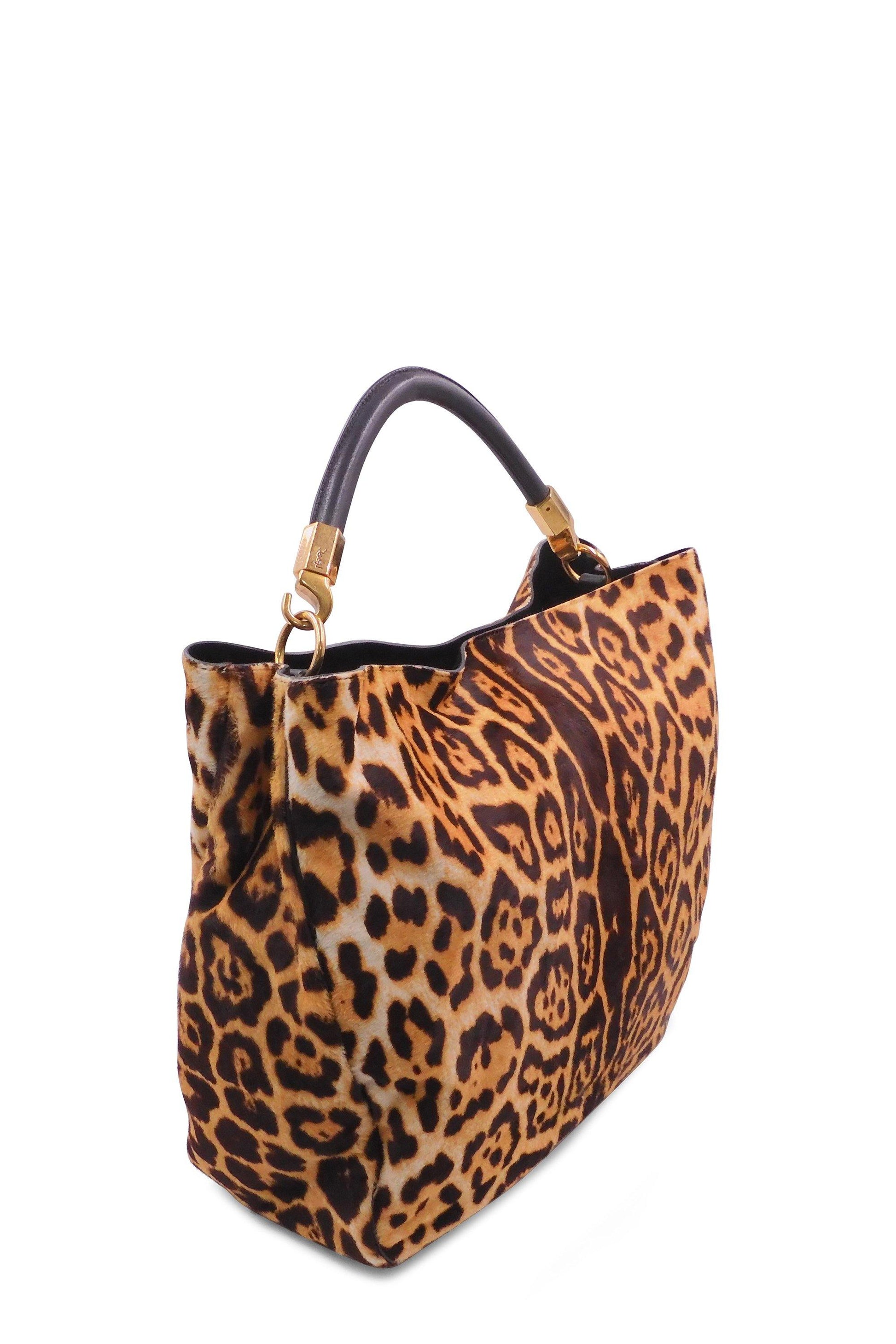 This Saint Laurent Pony Hair Leopard Print Roady Hobo features a ponyhair in leopard print body, a rolled shoulder strap and antique gold toned hardware. The top opens to a suede interior lining with patch pockets and detachable pouch.