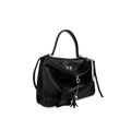 black calf leather smoothing finish single top handle silver-tone hardware signature bamboo turn-lock detachable shoulder strap slip pocket to the front main compartment two rear flap pockets logo tag