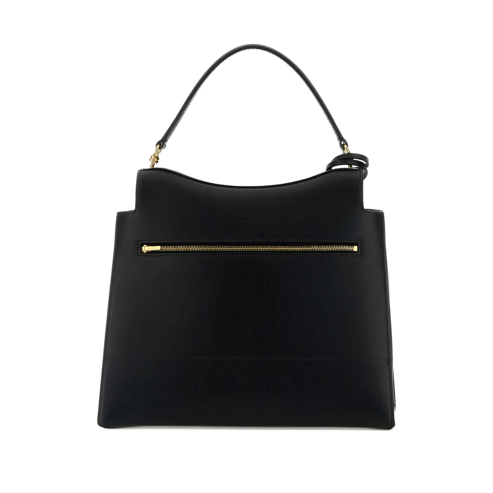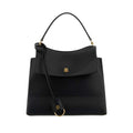 black foldover top with magnetic fastening single detachable top handle main compartment adjustable detachable shoulder strap