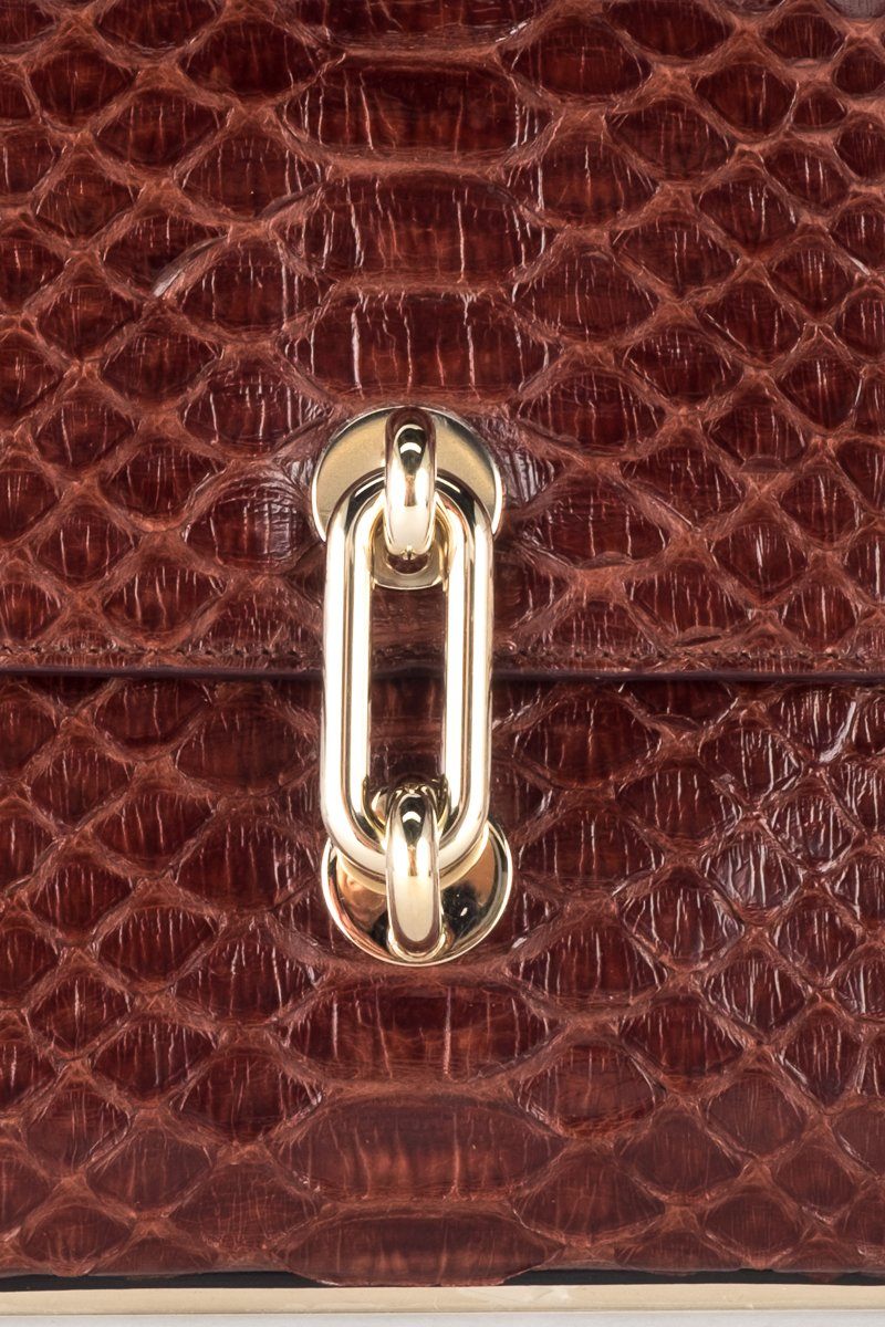 Balenciaga burgundy python shoulder bag with tonal stitching, flap closure at front with gold-tone turn-lock hook closure, single flat stitch top handle with single flat stitch short shoulder strap, black leather interior lining, and three interior pockets son with zip closure. This item has previously been worn with no major wear.