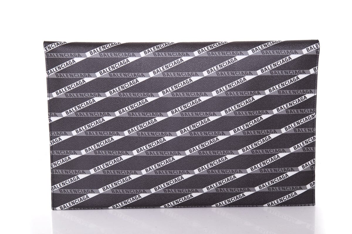 Balenciaga Grey and Black Logo Clutch. This item is new.