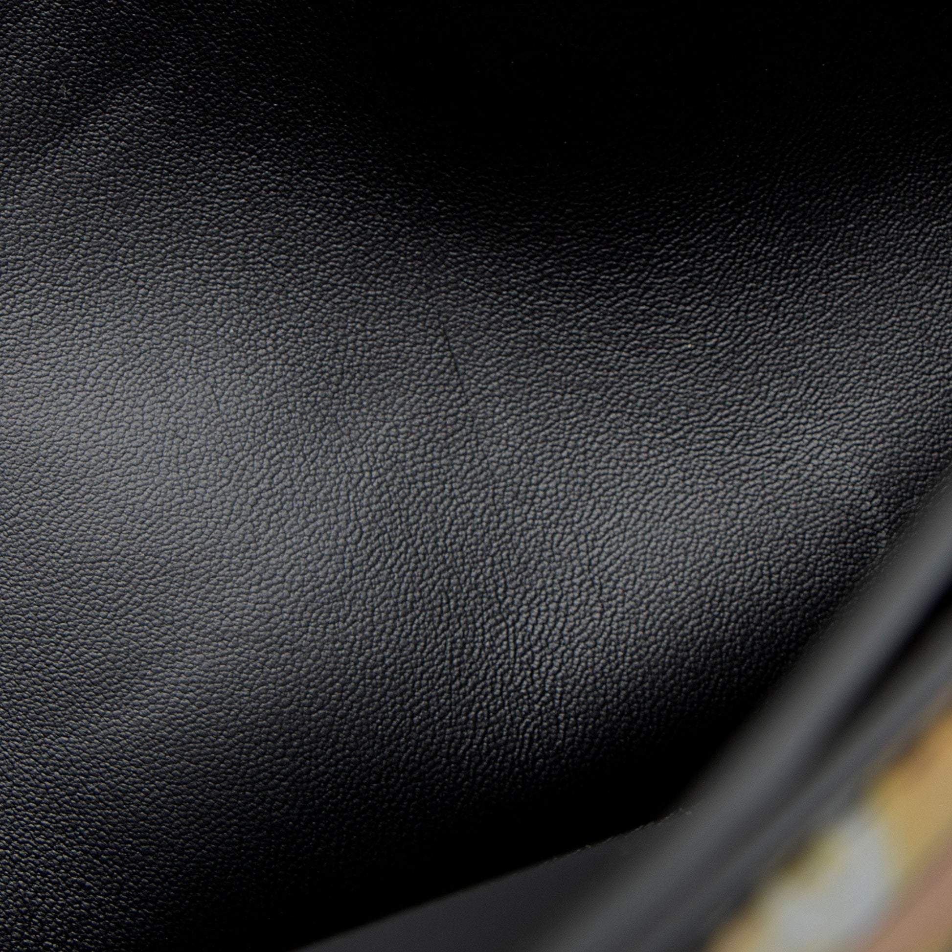 Condition Notes: Large creasing to center of exterior front causing visible loss of structure. Light creasing and warping to handle. Light surface scratches to hardware. Light imprints and wear throughout interior. Minor wear to interior.