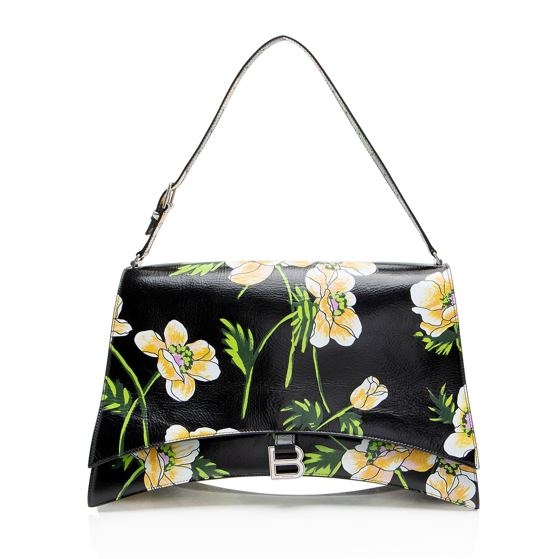 Balenciaga Leather Floral Crush Large Shoulder Bag