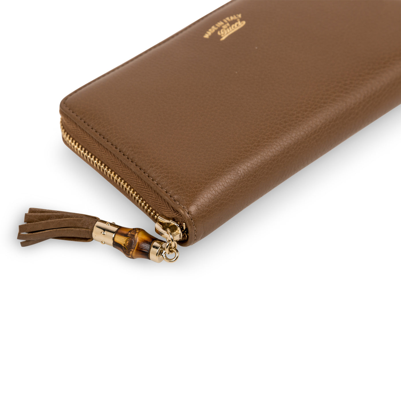 Crafted from light brown grained leather, this stunning Gucci Bamboo Wallet is an absolute must-have for any woman with a love for luxury. Sleek, stylish and sophisticated, this surprisingly spacious wallet is the perfect compliment to any luxury bag you have in your wardrobe. Hold all your essentials comfortably inside while remaining effortlessly elegant. The perfect accessory to take you from day to night, the Gucci WOC is that one piece you'll use for any and every occasion. A timeless accessory you'll have forever, this bag is a well-worthy addition to any luxury bag and purse collection.