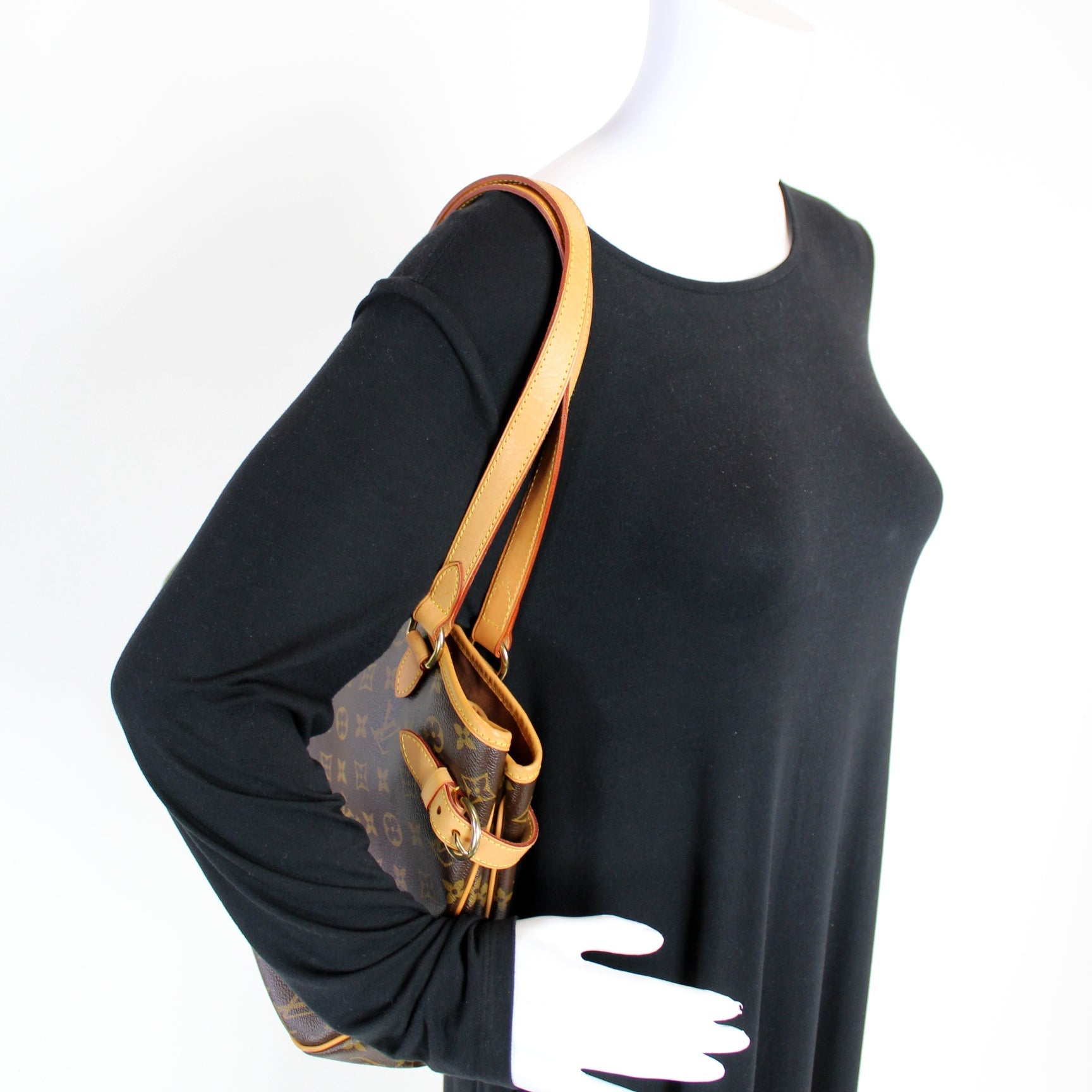This Louis Vuitton Batignolles Horizontalis eye catching bag. The exterior is in the classic Louis Vuitton Monogram coated canvas.