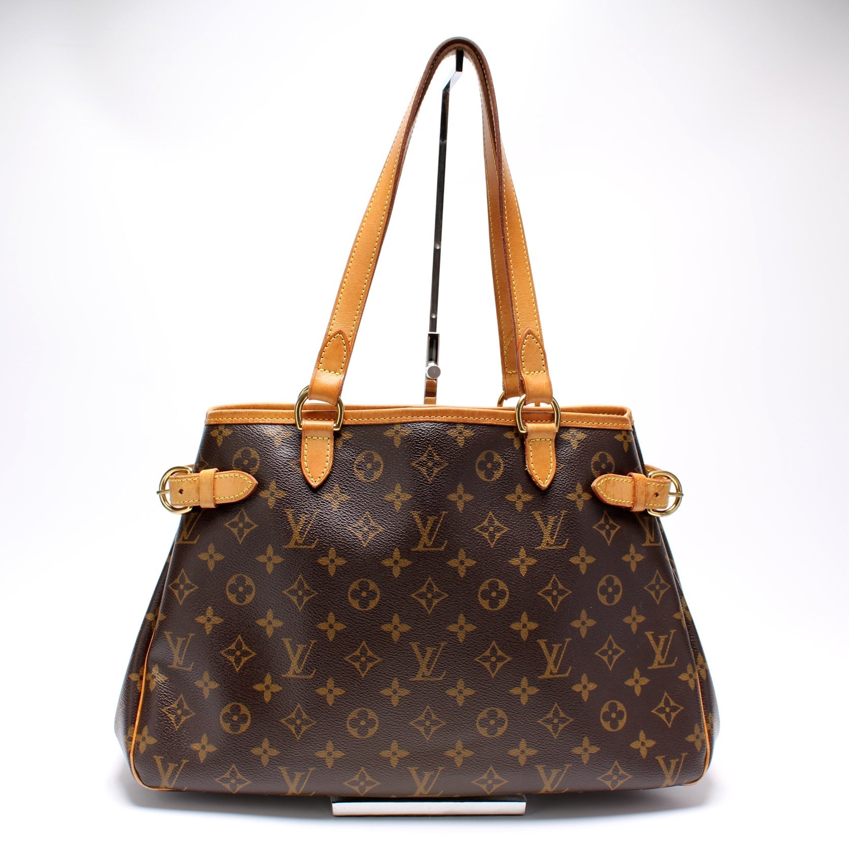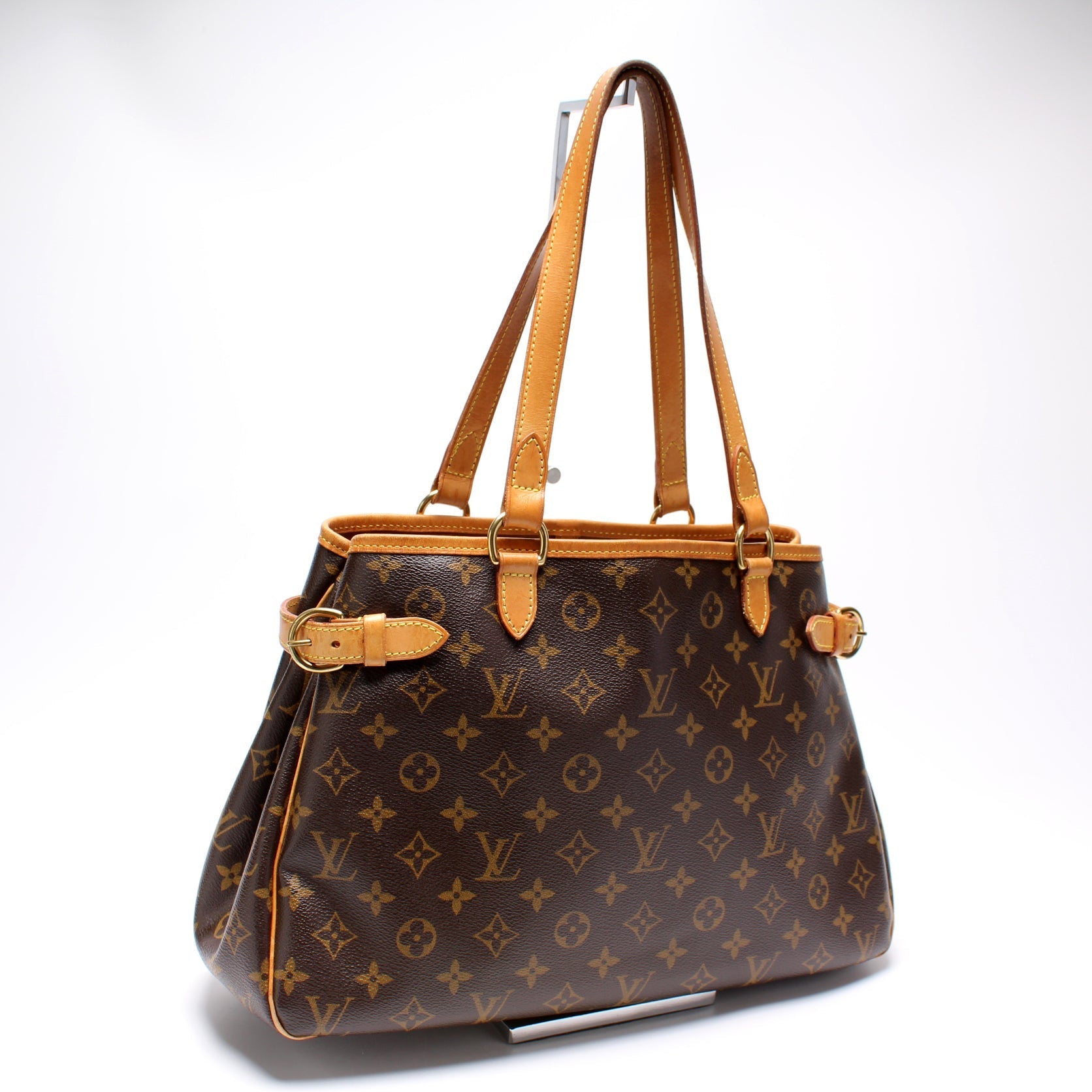 This Louis Vuitton Batignolles Horizontalis eye catching bag. The exterior is in the classic Louis Vuitton Monogram coated canvas.