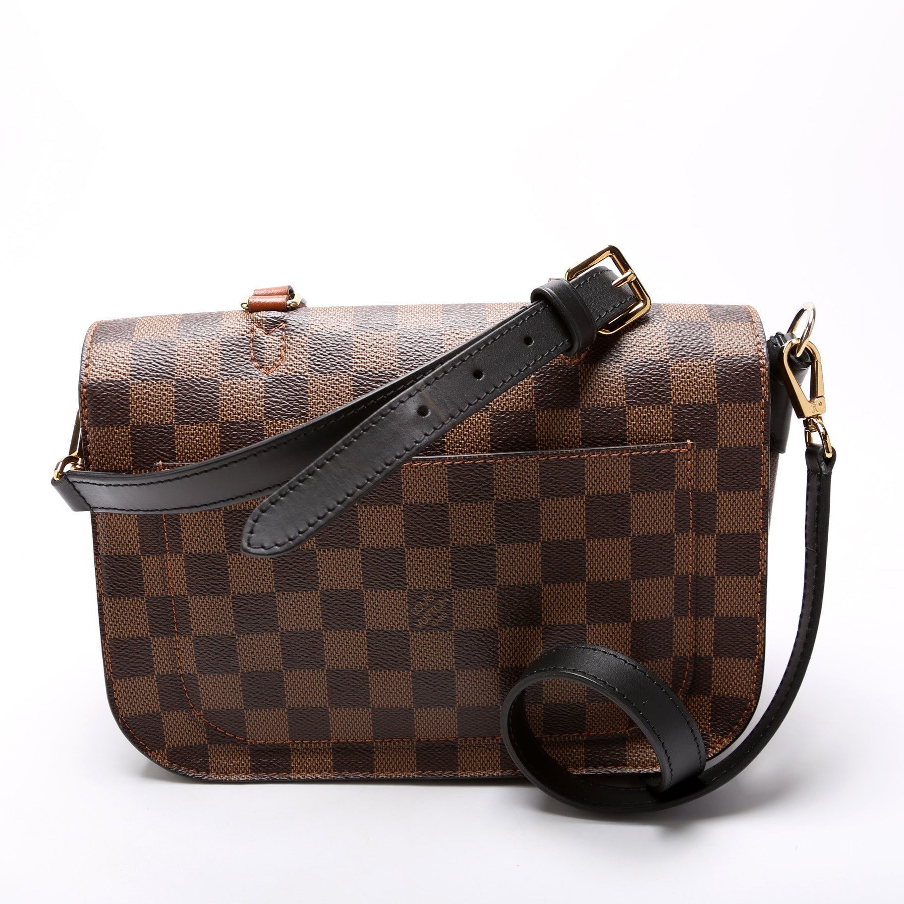 This Louis Vuitton Beaumarchaisis eye catching bag. The exterior is in the classic Louis Vuitton Damier Ebene coated canvas.