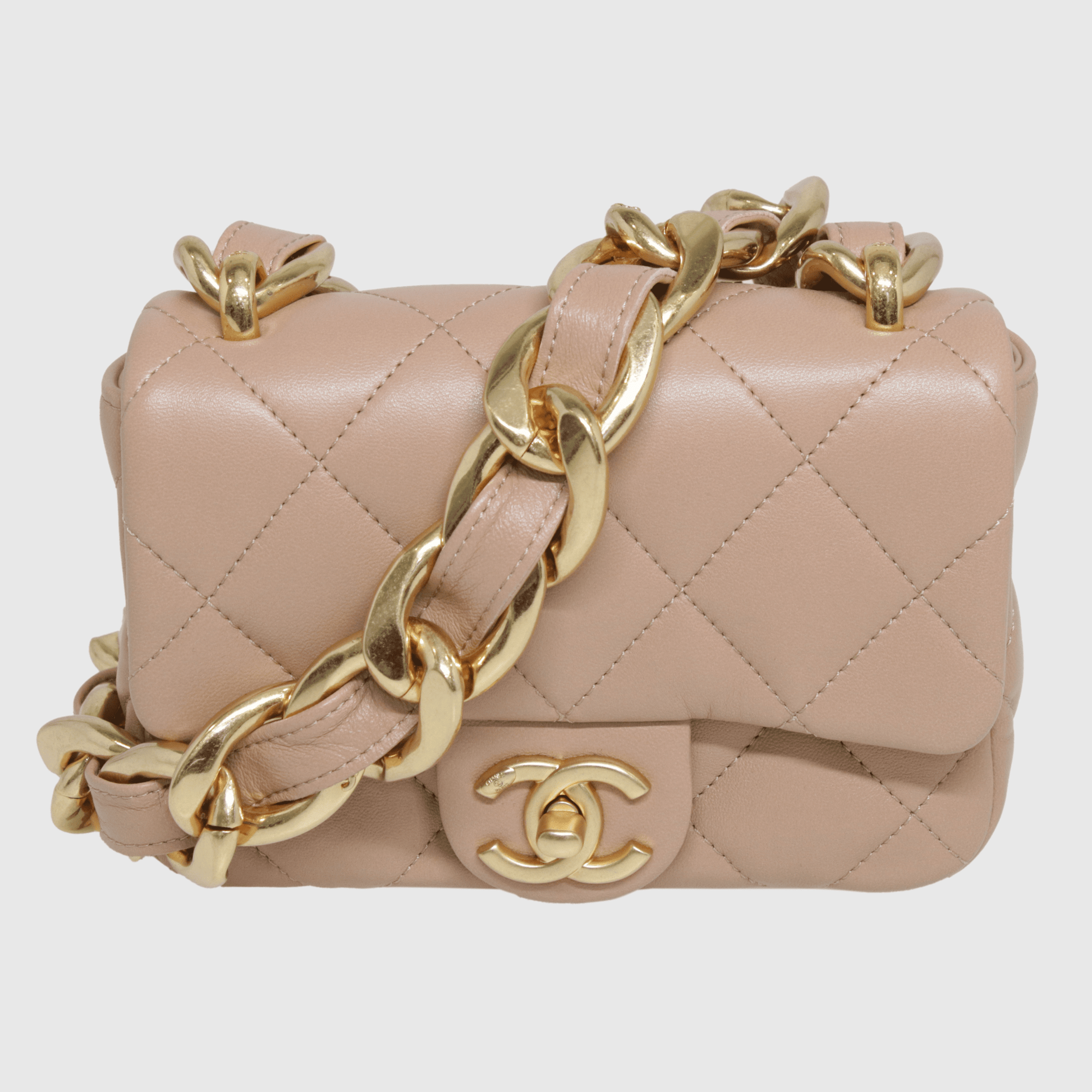 Beige Chunky Chain Strap Mini Flap Bag - SS22