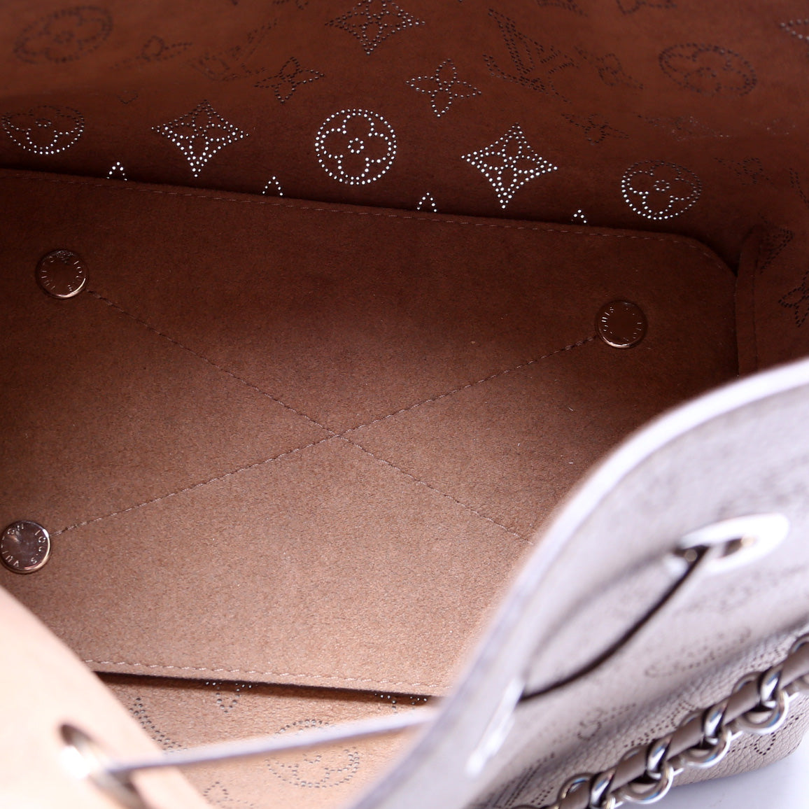 This Louis Vuitton Bella is d 100% . The exterior is in the classic Louis Vuitton Mahina leather.