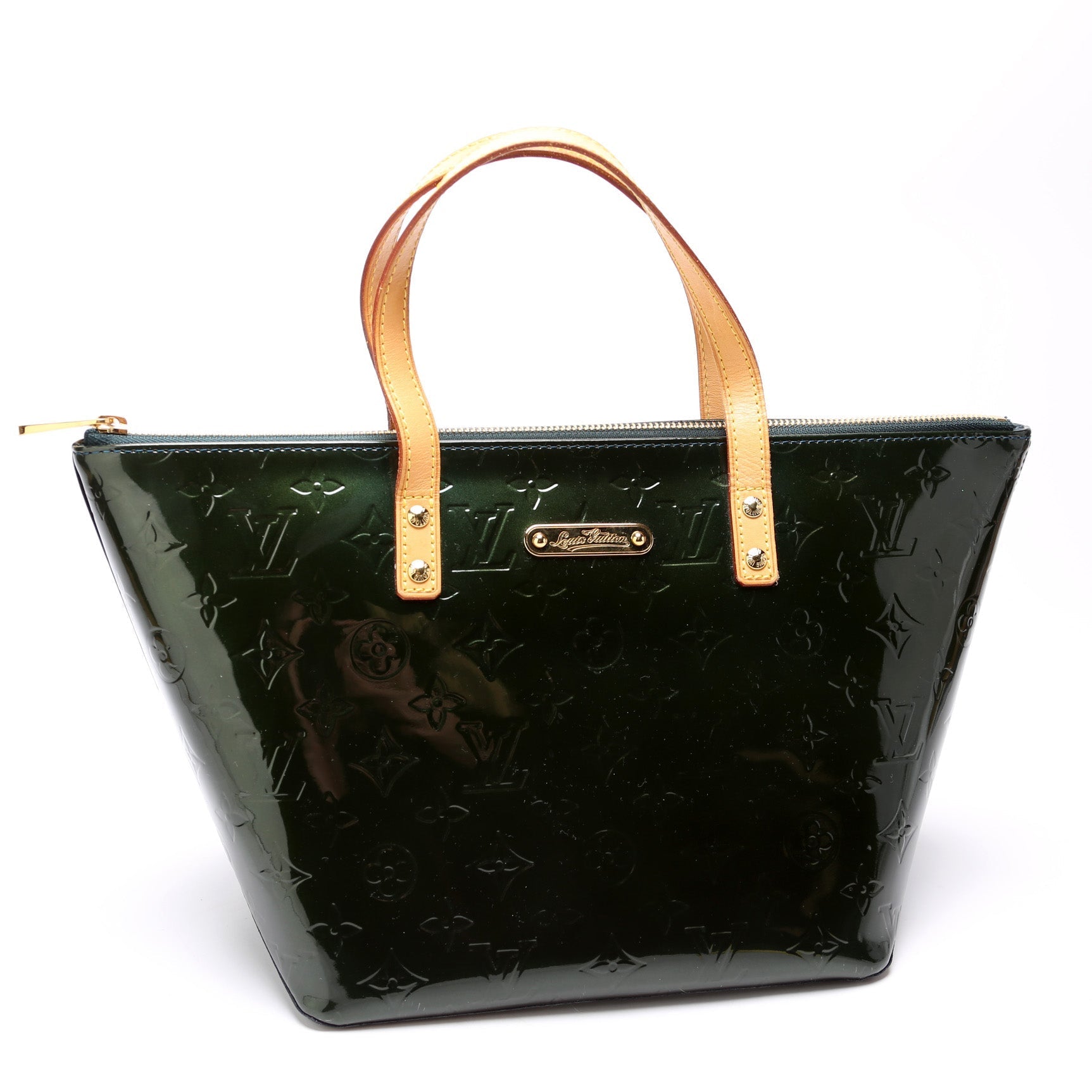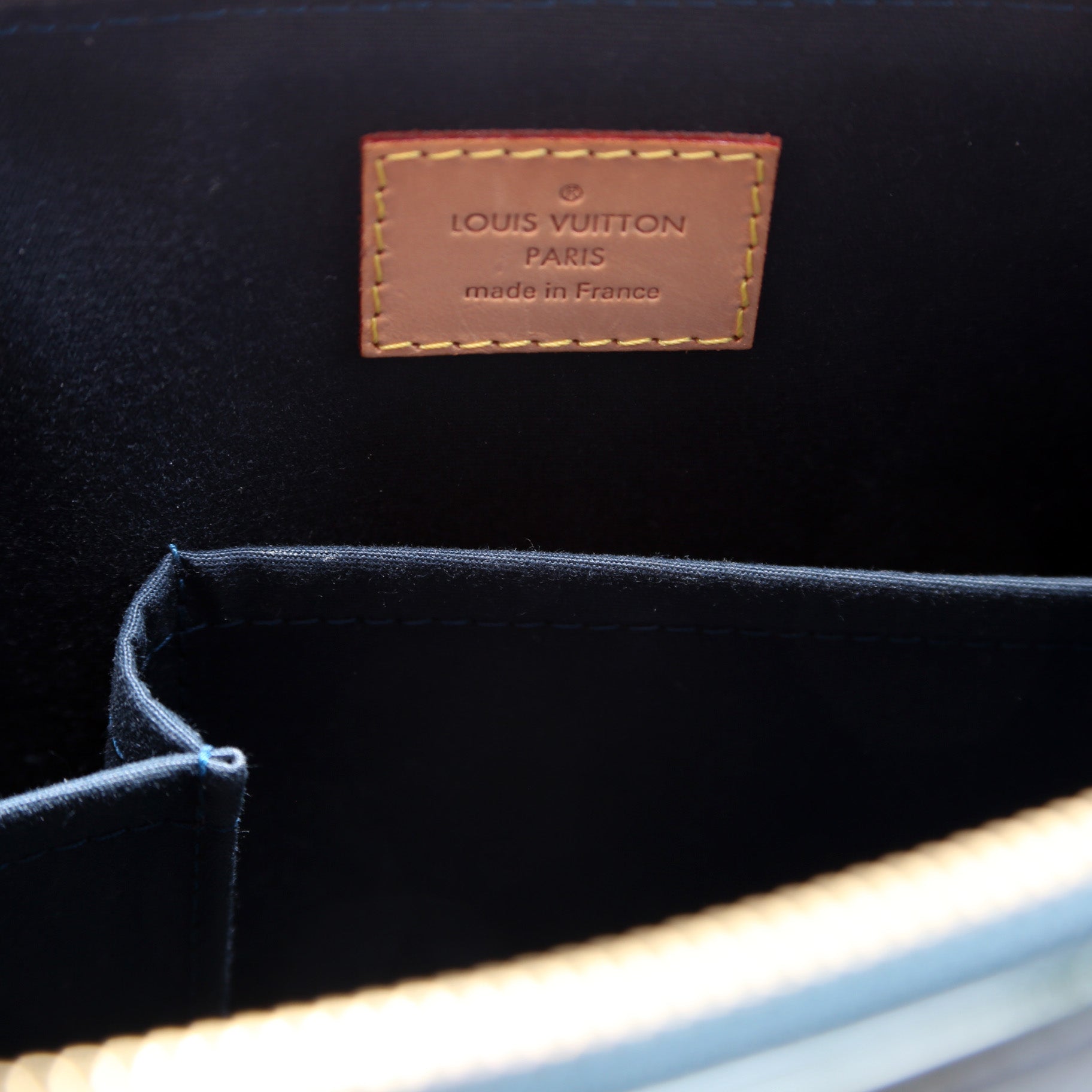 This Louis Vuitton Bellevue PMis eye catching bag. The exterior is in the classic Louis Vuitton Vernis leather.