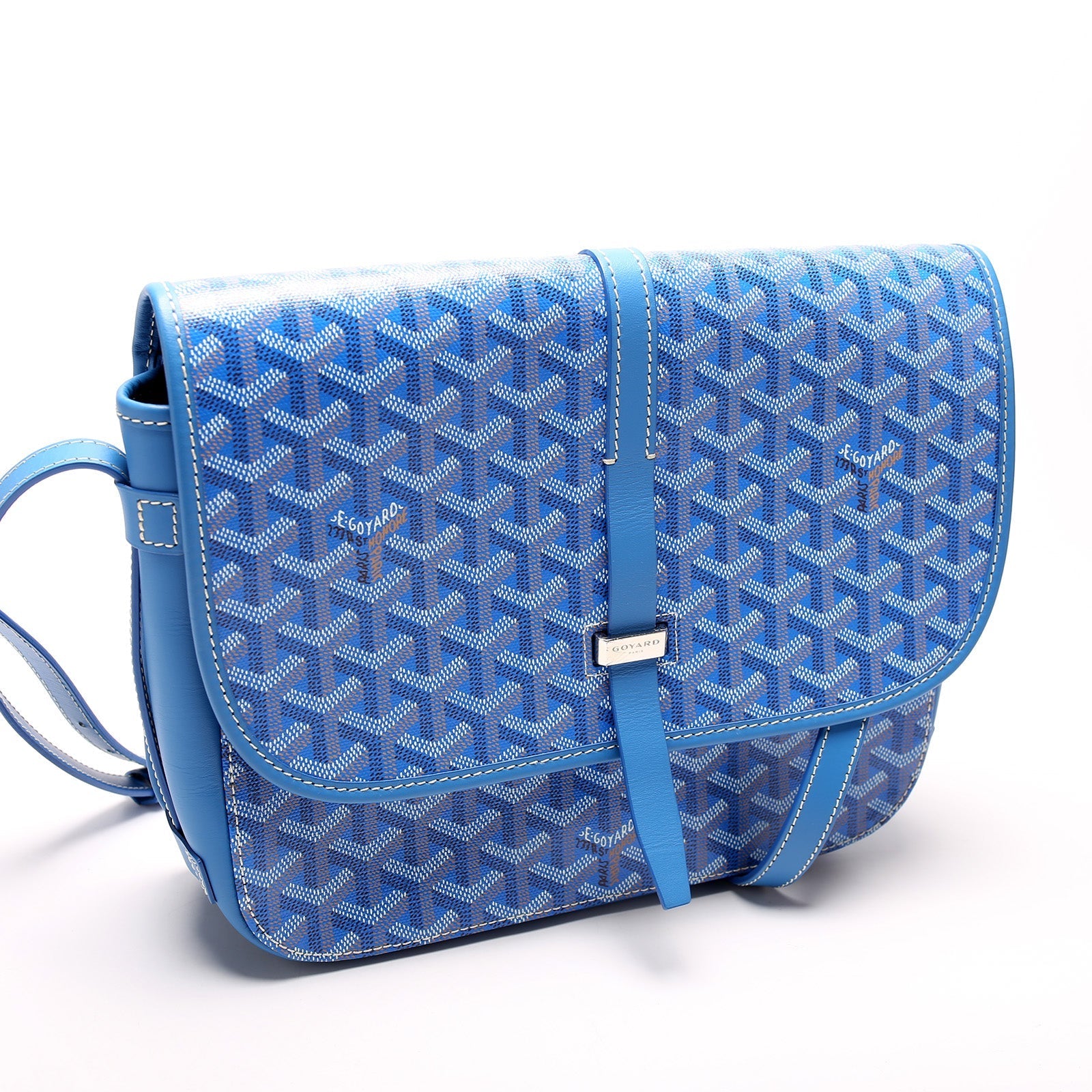 This Goyard Belvedere II MMis eye catching bag. The exterior is in the classic Goyard Goyardine coated canvas.