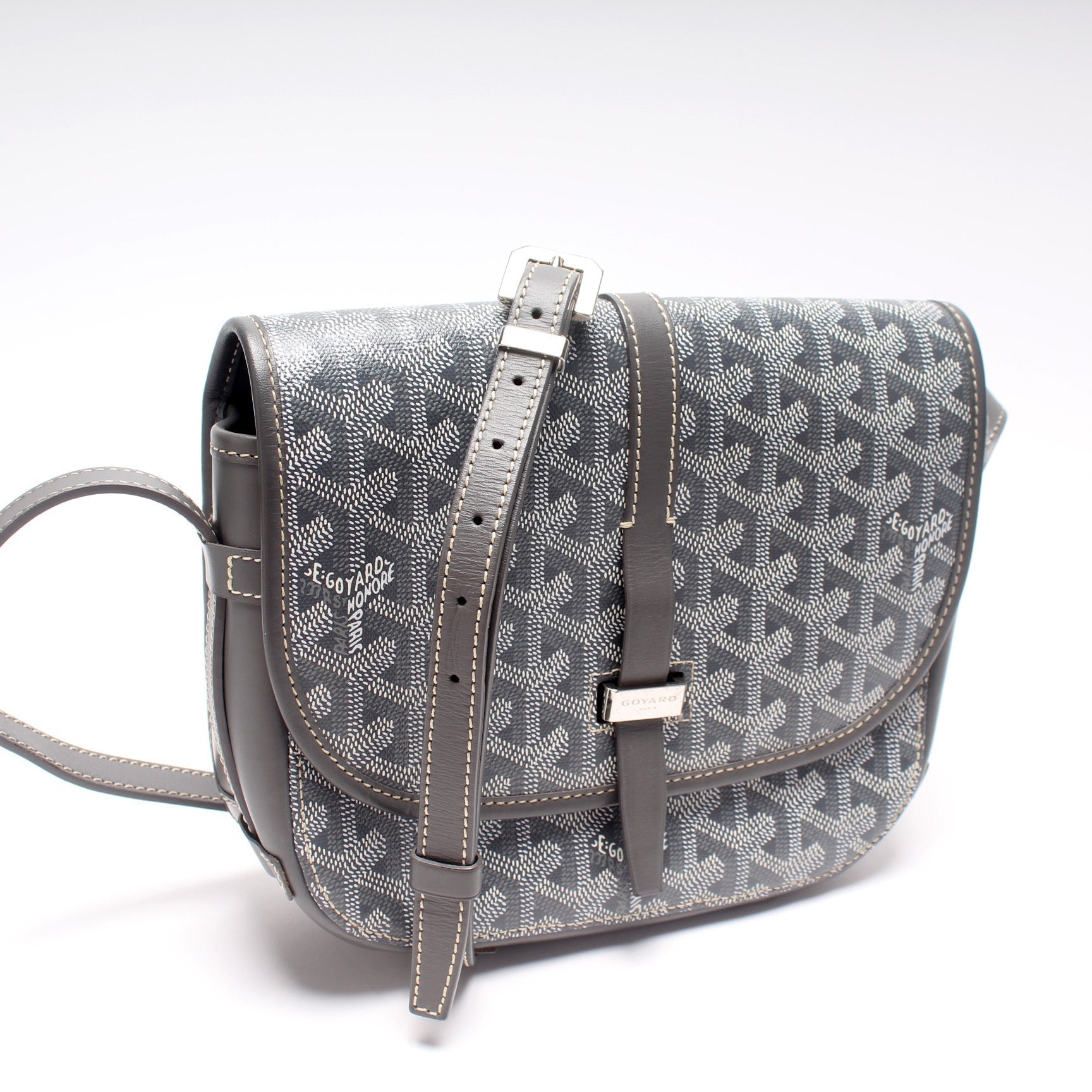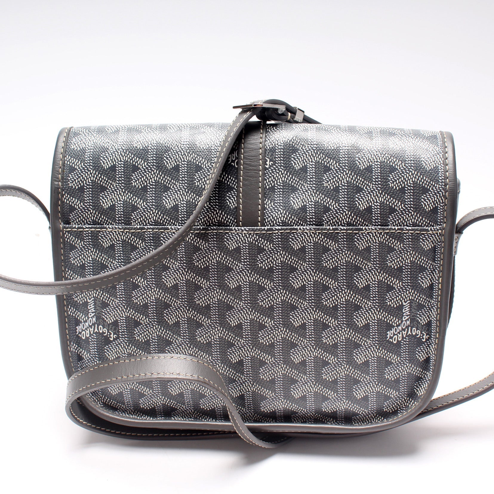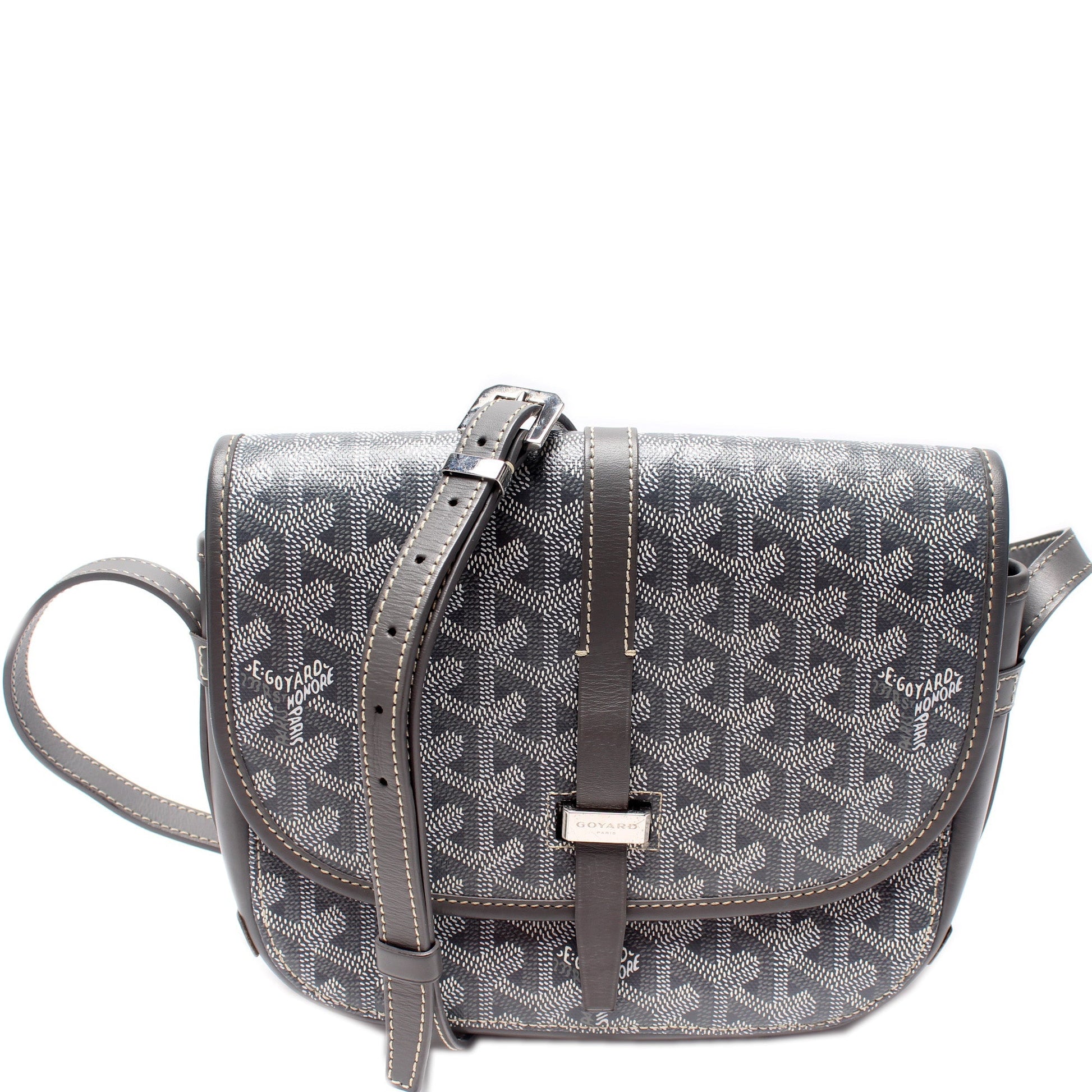 This Goyard Belvedere II PMis eye catching bag. The exterior is in the classic Goyard Goyardine coated canvas.