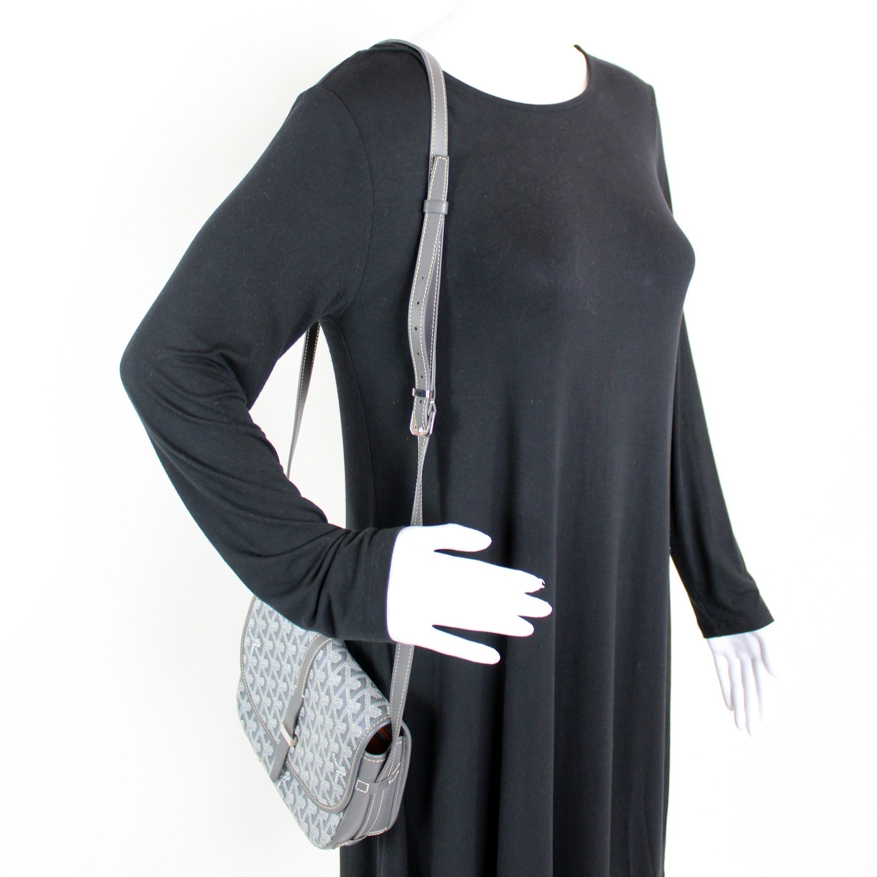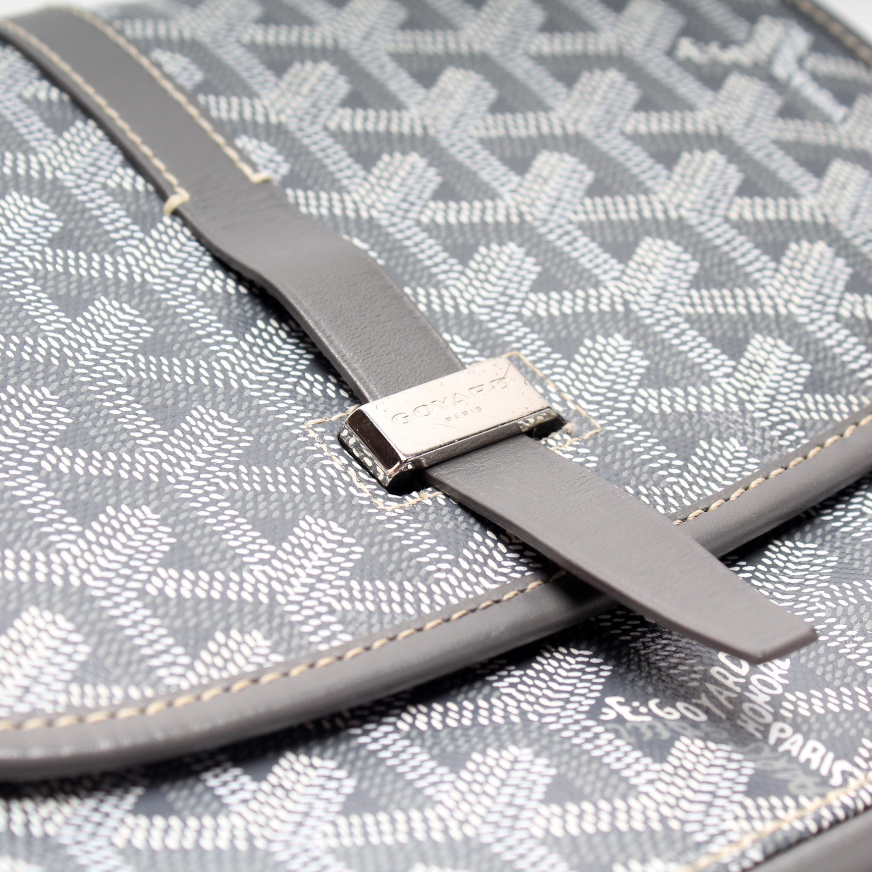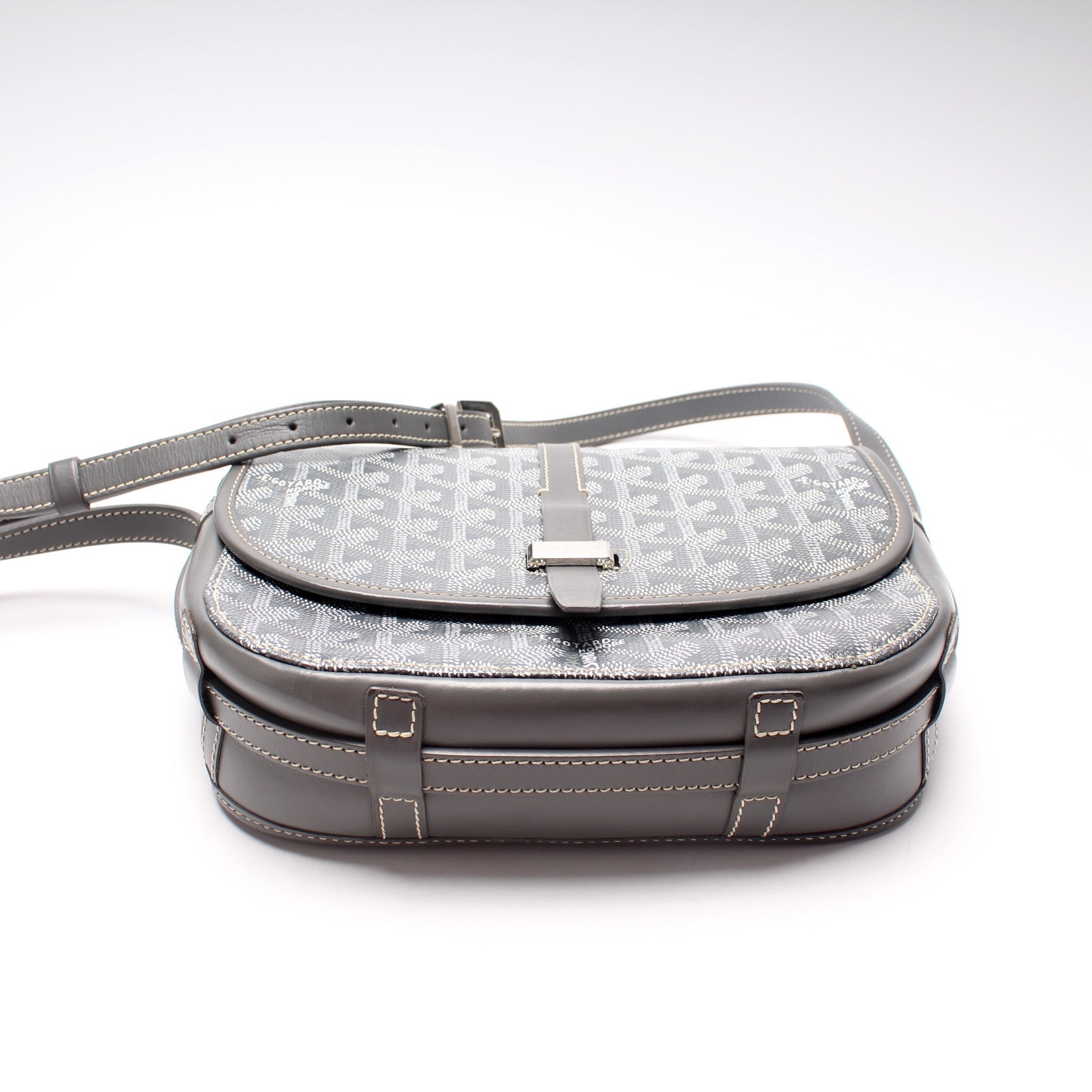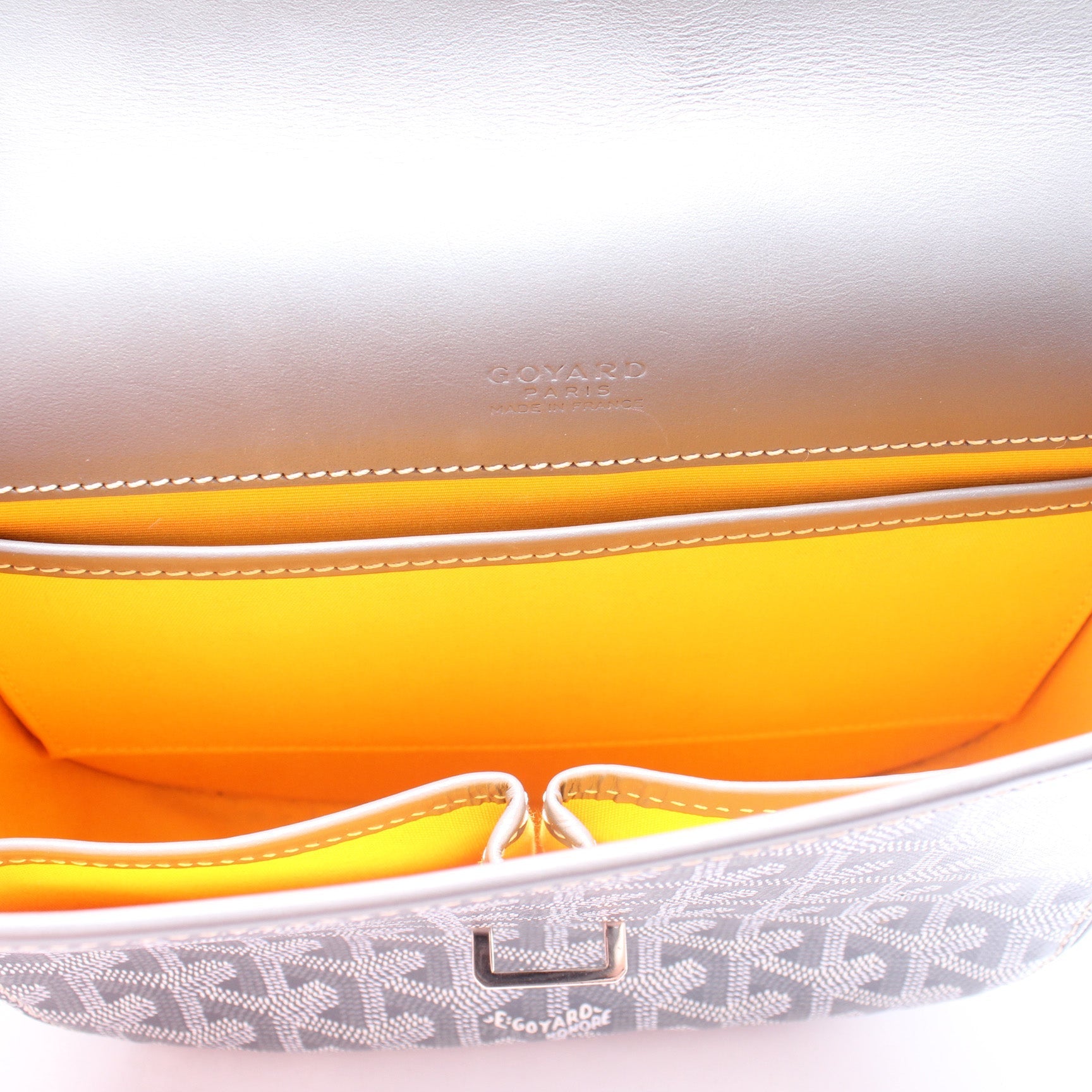 This Goyard Belvedere II PMis eye catching bag. The exterior is in the classic Goyard Goyardine coated canvas.