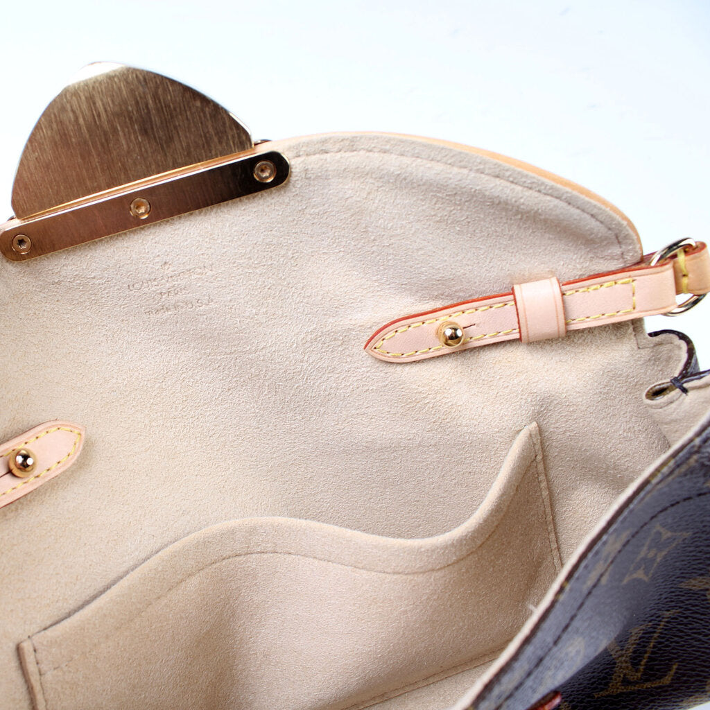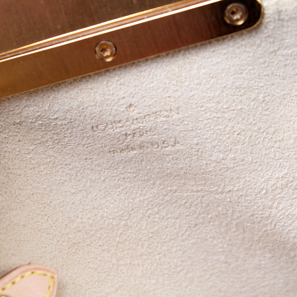 This Louis Vuitton Beverly Clutchis eye catching bag. The exterior is in the classic Louis Vuitton Monogram coated canvas.