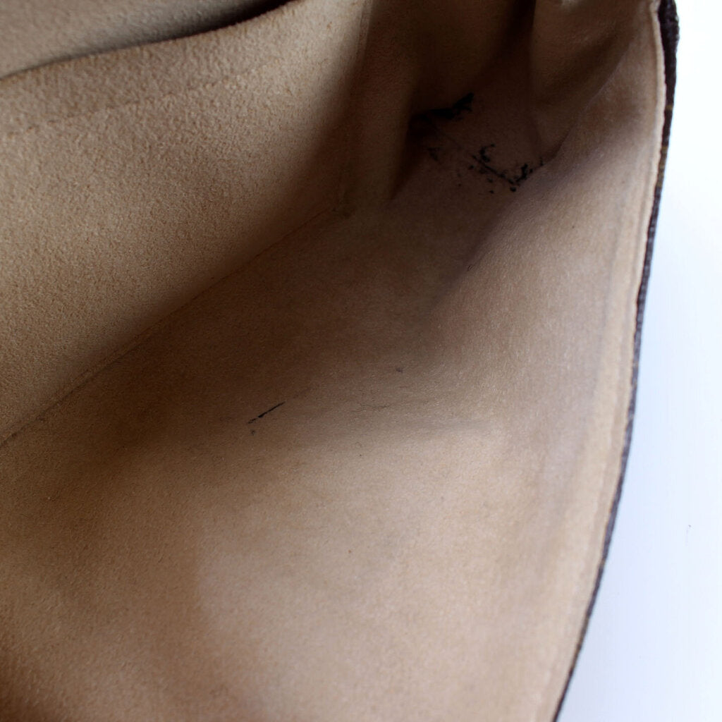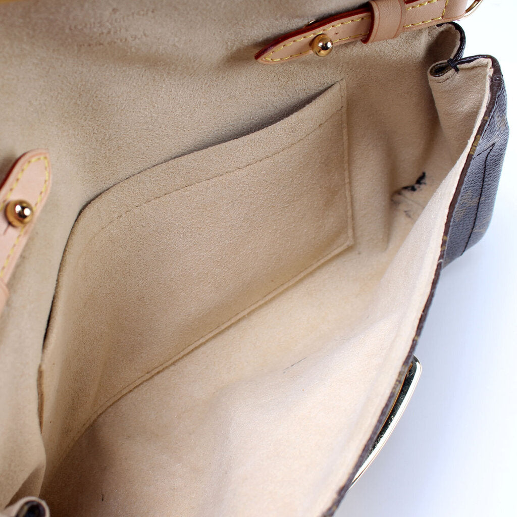 Exterior: The exterior Monogram coated canvas is free of any rips or cracks. The corners and leather details show signs of wear.