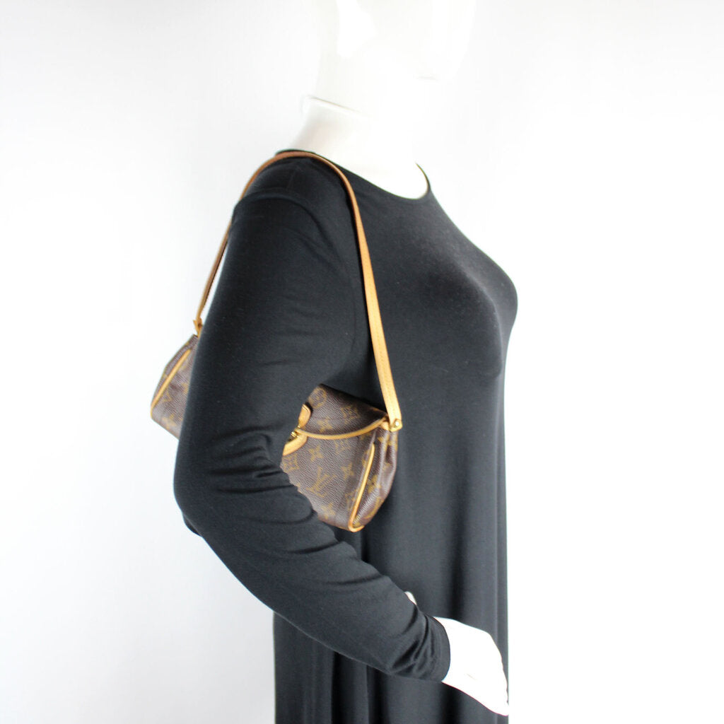 This Louis Vuitton Beverly Clutchis eye catching bag. The exterior is in the classic Louis Vuitton Monogram coated canvas.
