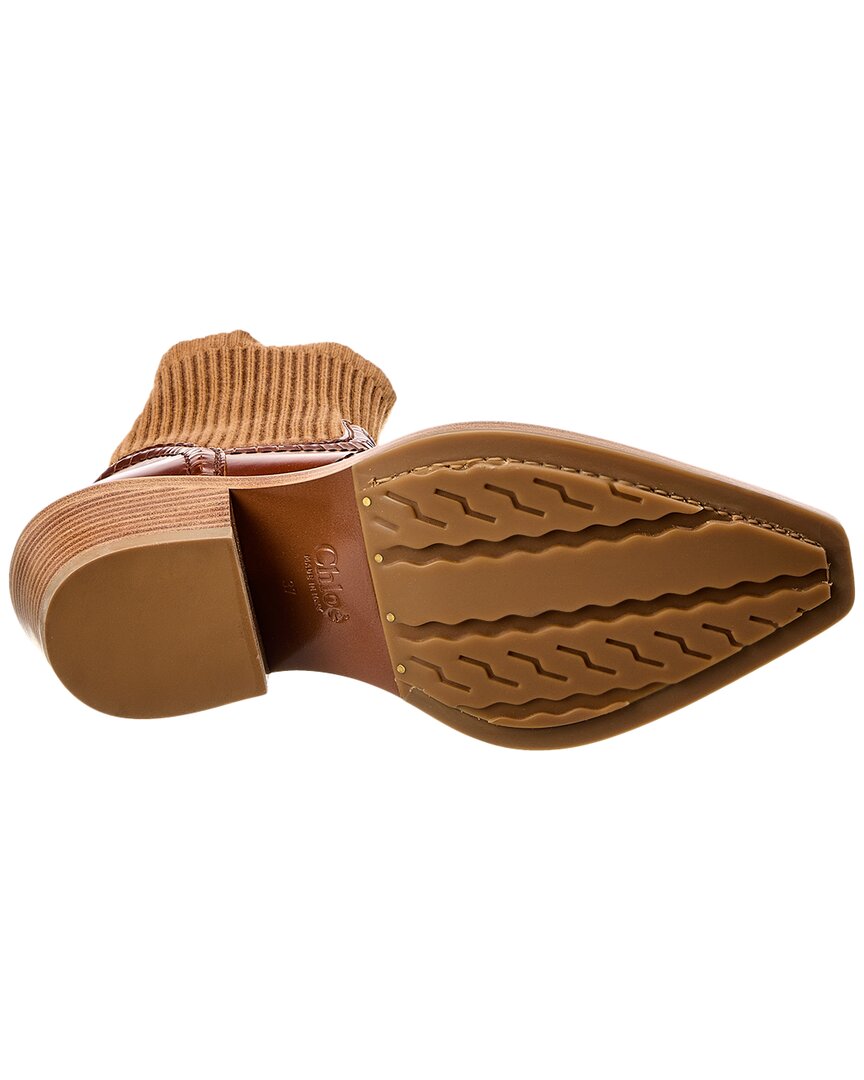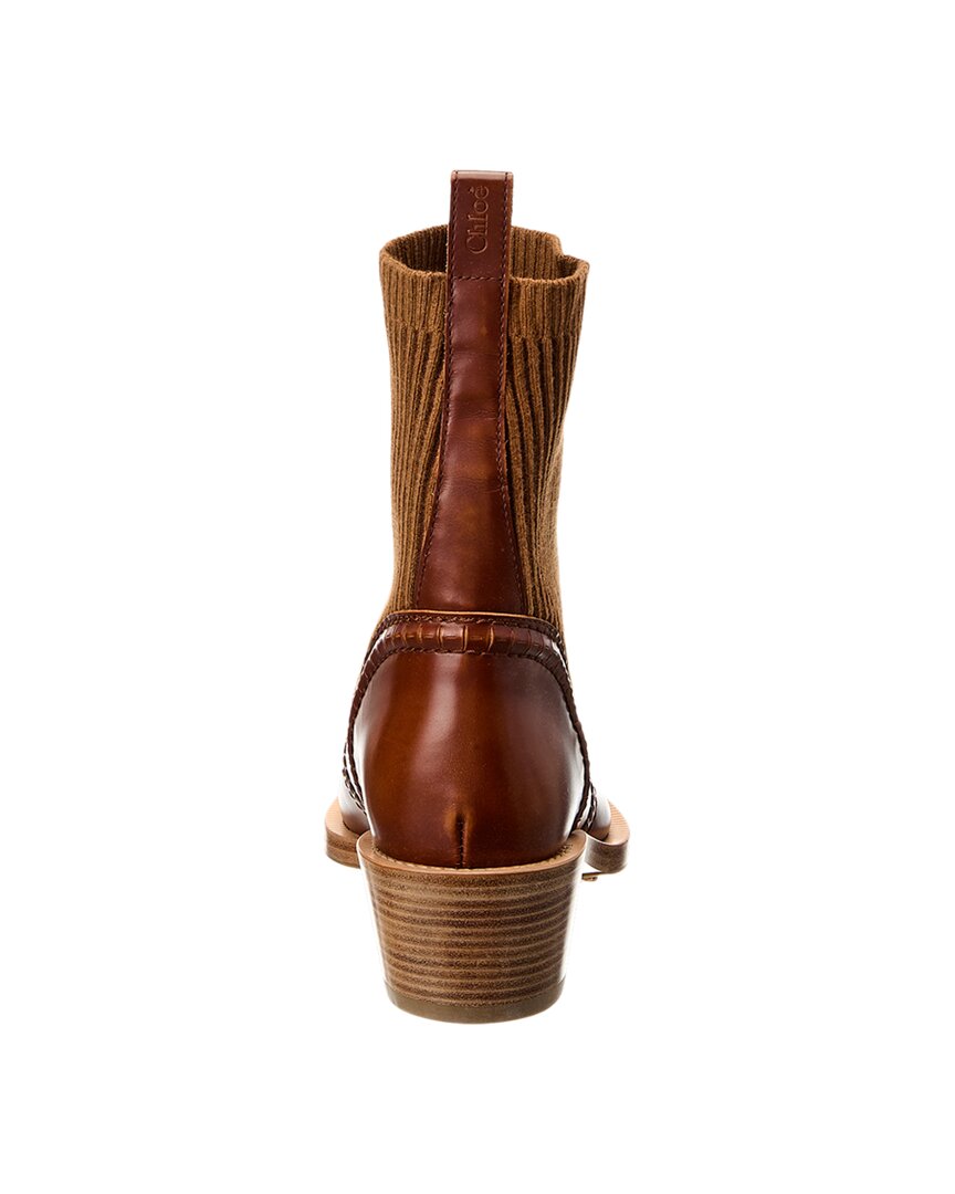 - Nellie Texan Leather Bootie In Brown Leather With Knit Cuff And Pull-On Tab