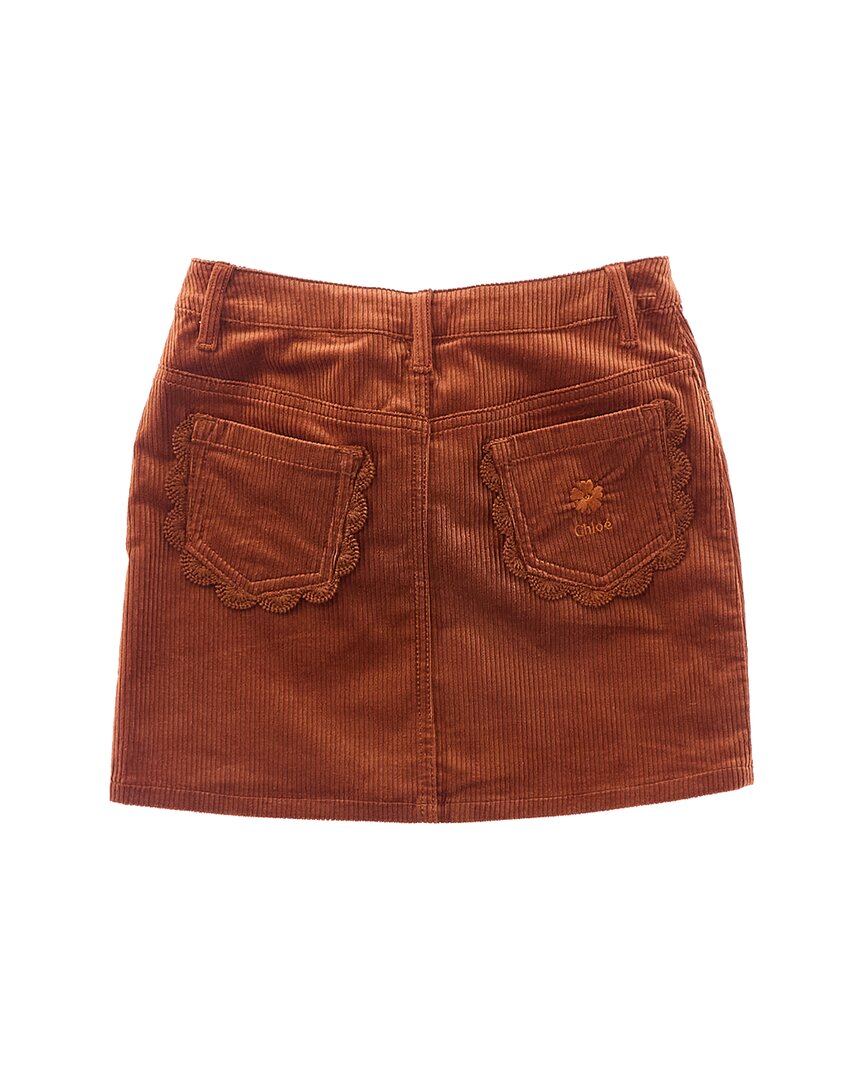 - Skirt In Brown With Corduroy Fabric, Belt Loops, Classic Five-Pocket Styling And Scalloped Lace Trim