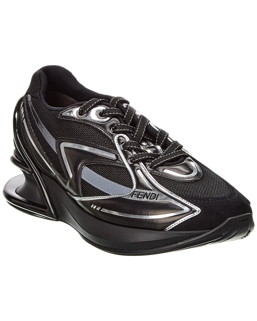 - First 1 Sneaker In Black Textile, Mesh And Leather With F-Shaped Sole