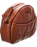 - Moony Diamond Leather Crossbody In Umber Leather And Gold-Tone Hardware With Stud Embellishments And Slide Pocket