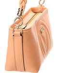 - Exterior Design Details: Gold-Tone Hardware, Embossed Logo Accent, Braided Top Handle