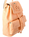 - Abraham Dollaro Monogram Leather Backpack In Peach Blush Leather And Gold-Tone Hardware With Exterior Pockets