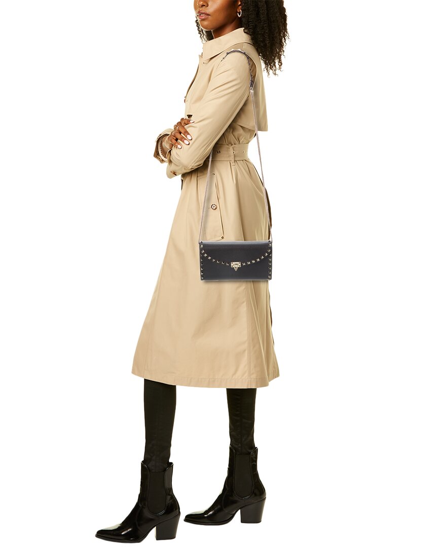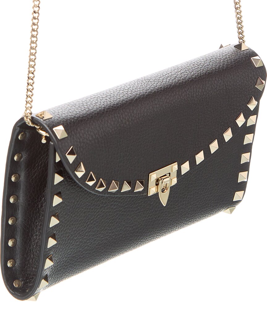 Valentino Rockstud Grainy Leather Wallet On Chain