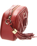 - Bella Diamond Leather Crossbody In Rust With Logo And Tassel Charm
