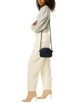 - Moony Diamond Leather Crossbody In Ink Blue Leather And Gold-Tone Hardware With Slide Pocket