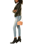 - Moony Diamond Leather Crossbody In Peach Blush Leather And Gold-Tone Hardware With Slide Pocket