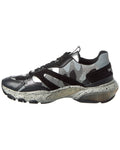 - Camo Mesh & Leather Sneaker In Black And Grey Camo Mesh, Leather And Suede With Transparent Sole Details