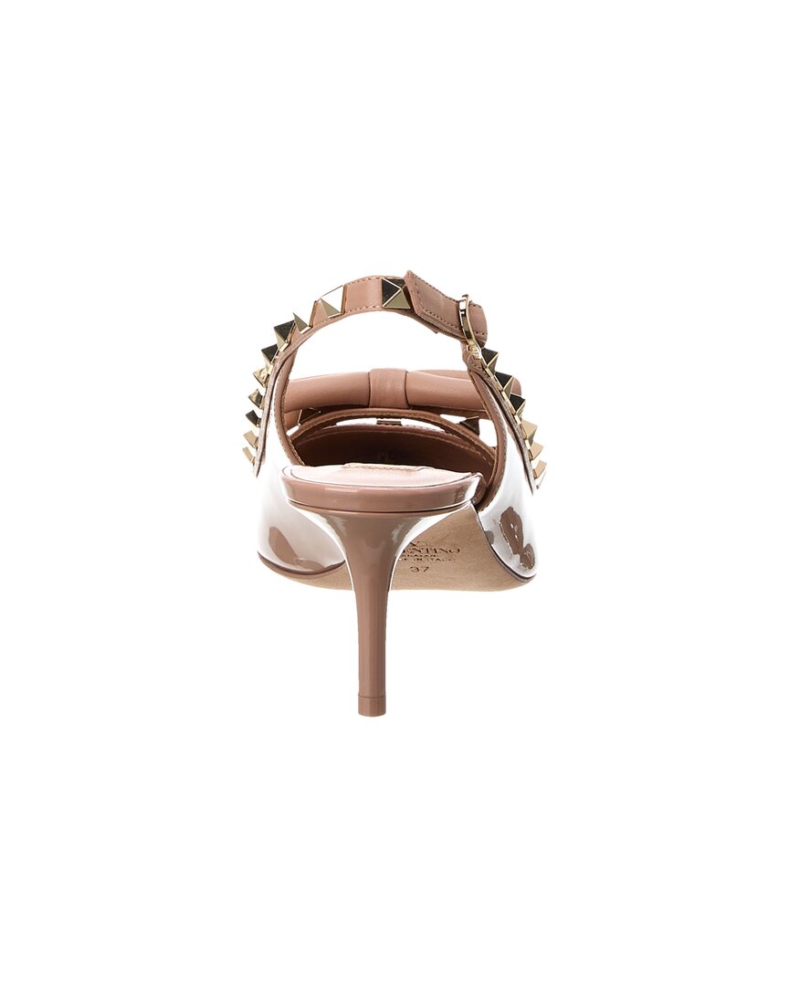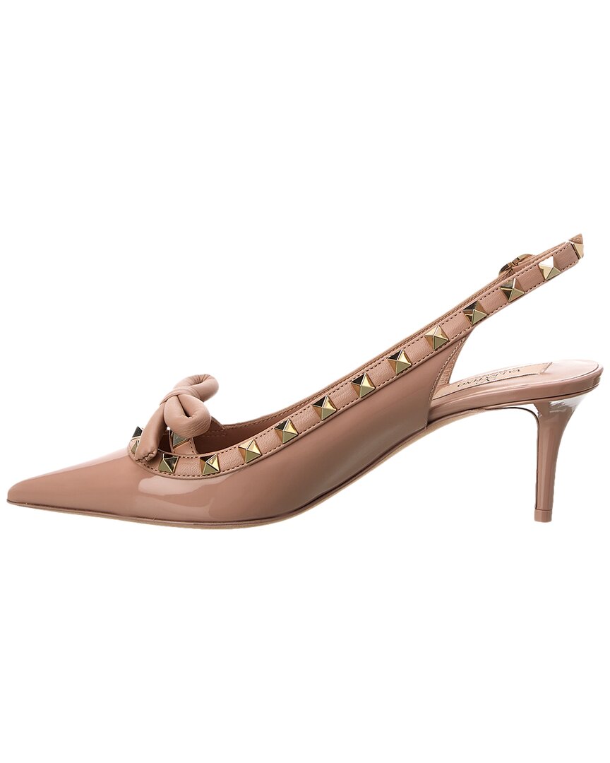 - Rockstud 60 Patent Slingback Pump In Pink Patent Leather With Platinum-Finish Rockstuds And Padded Bow Accent