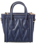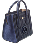 - Eva Diamond Leather Tote In Navy Leather And Suede And Gold-Tone Hardware With Logo Accent