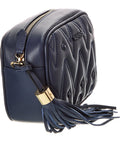- Amel Diamond Leather Crossbody In Navy Leather With Stud Embellishments And Tassel Charm
