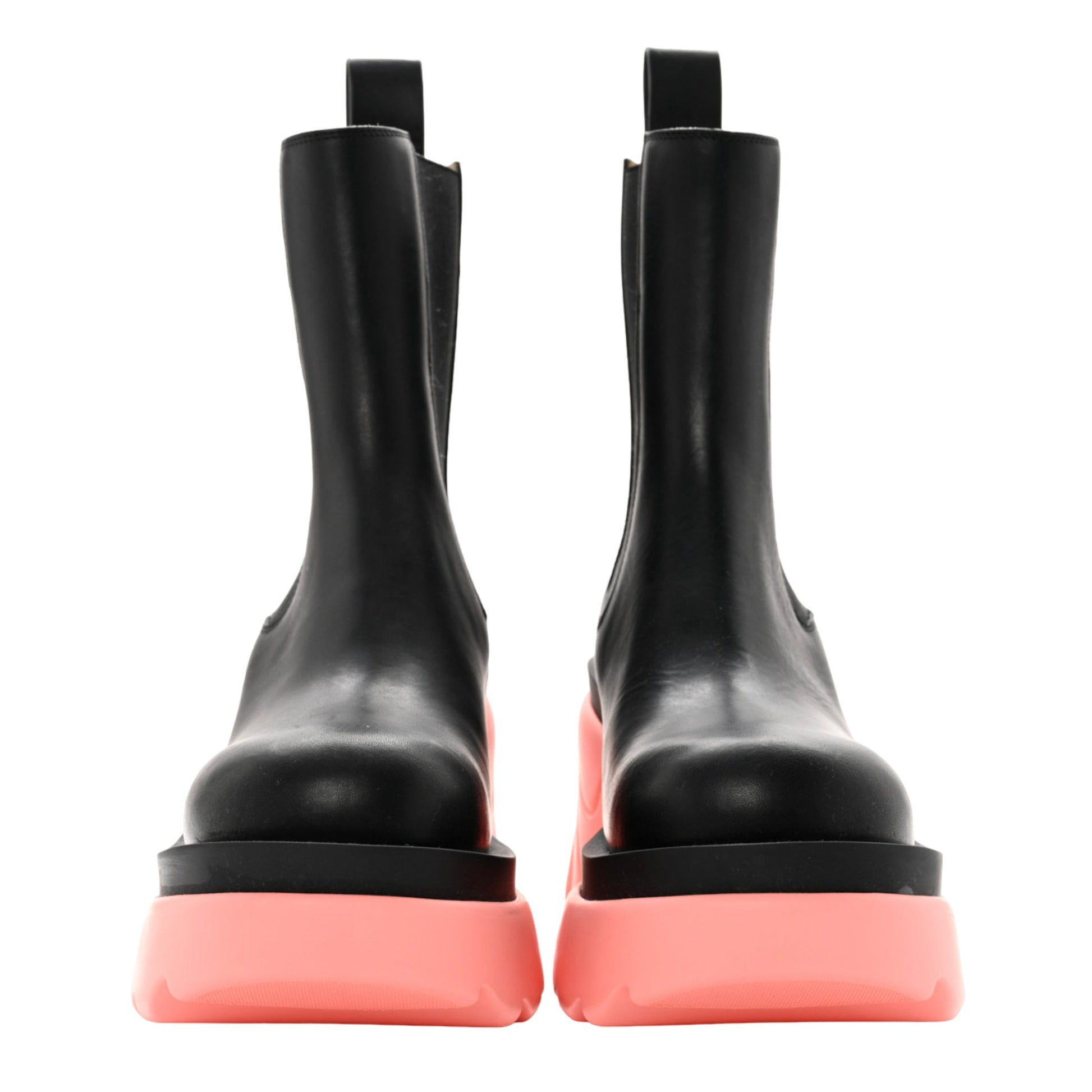 The Bottega Veneta The Flash Chelsea Boot is crafted from sleek black and pink calfskin and features a bold block heel. This Chelsea boot combines a striking color contrast with a sturdy design, showcasing the brand's commitment to high-quality materials and modern sophistication.US Shoe Size - 6EU Shoe Size - 36Shoe Color - Black,PinkShoe Material - CalfskinShoe Heel Height - 3.5Shoe Toe Shape - Round ToeShoe Closure Type - Pull OnMSRP - 1640.00